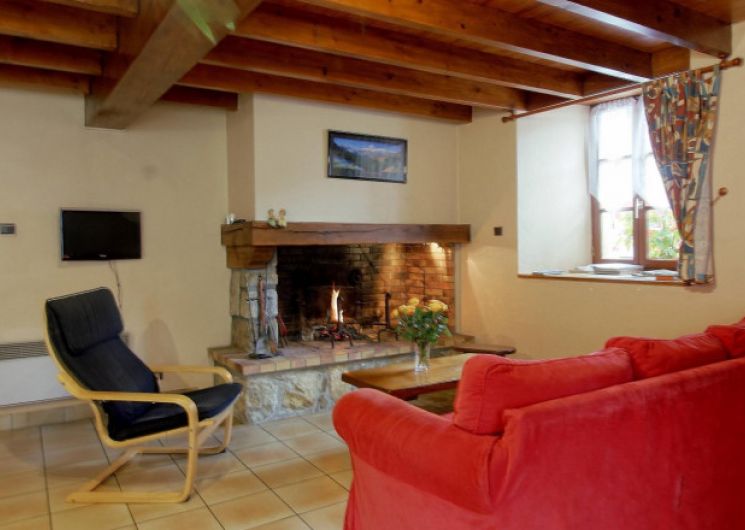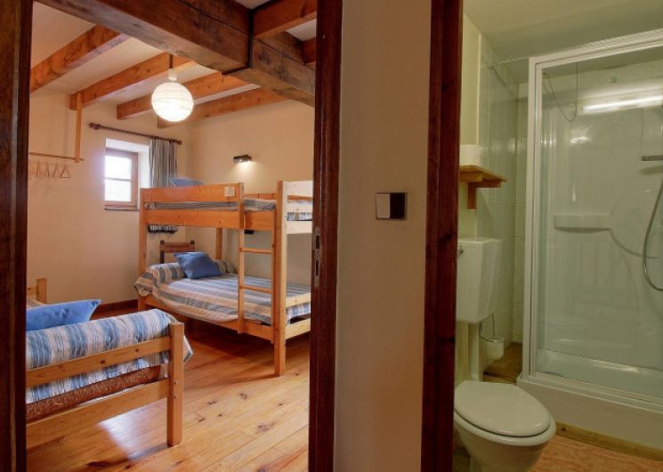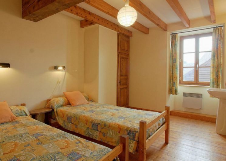 Séjour avec cuisine et salon avec cheminée, buanderie, 3 chambres à l’étage dont une avec salle d’eau (1 lit 2 place, 3 lits 1 place, 2 lits superposés), petit jardin clos, stationnement public à 50m.