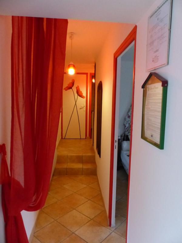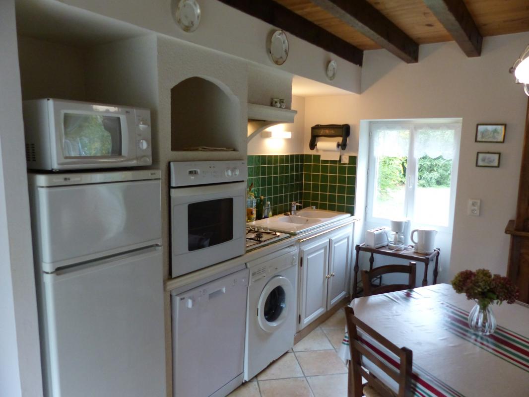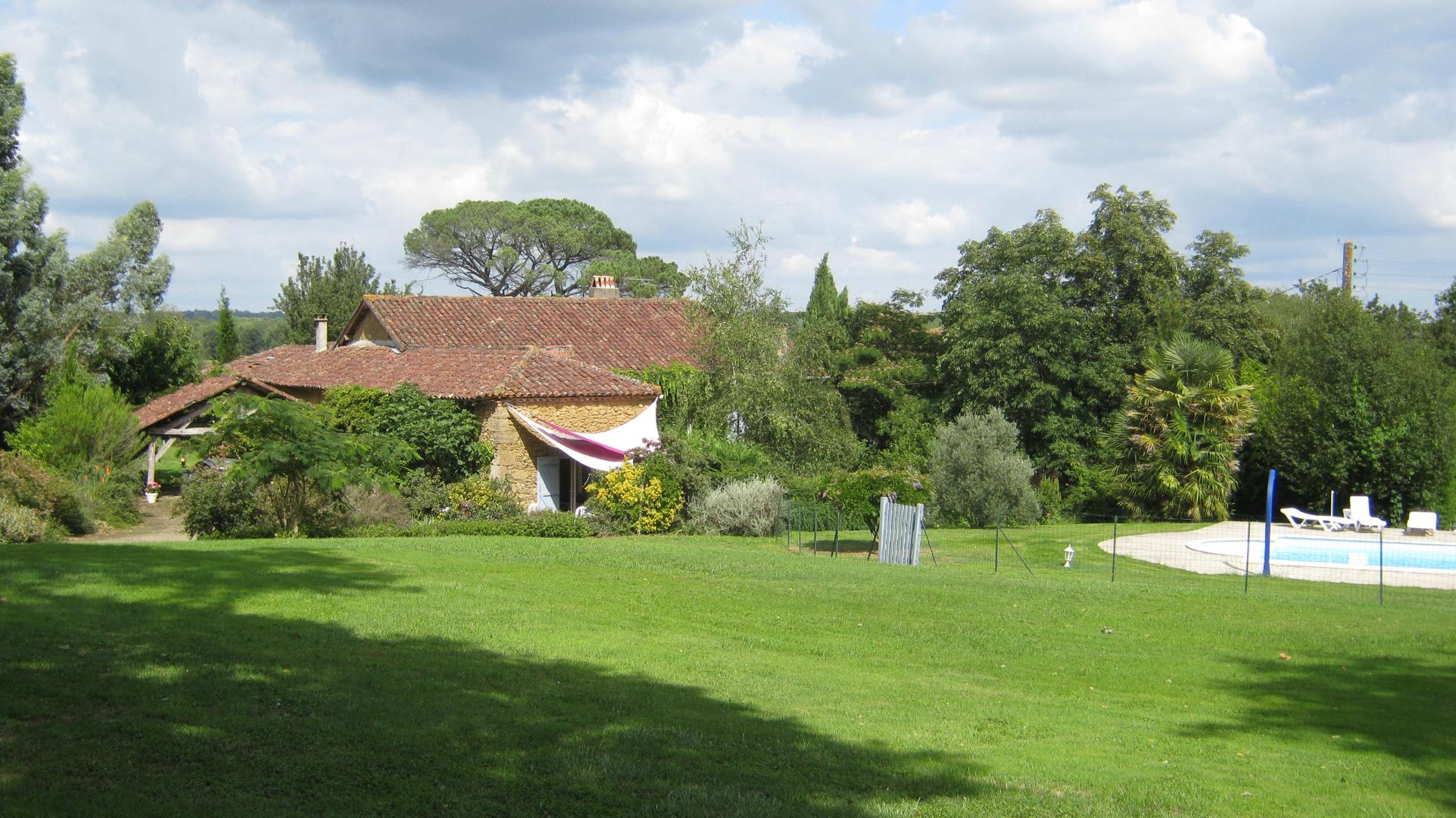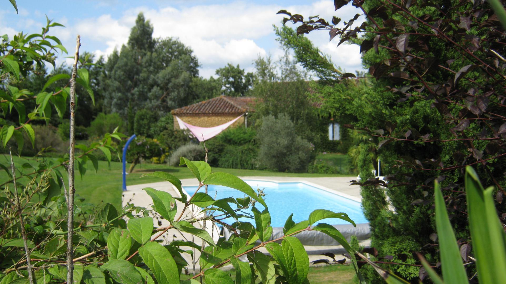 Elle dispose d’un accès indépendant, d’une terrasse privative de 25m² et d’un jardin privatif fleuri et ombragé de 600m². Vous profiterez de la piscine commune et clôturée (10x5m – prof. 1/1,7m) ainsi que de l’aire de jeux avec ping-pong, badminton et portique avec balançoire. Le gîte est non-fumeur.