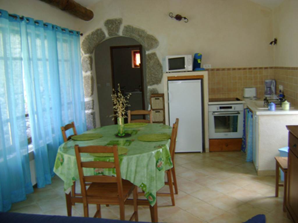 En rez de chaussée, accès de plain pied, séjour-cuisine, 2 chambres, salle d’eau avec wc, 1 cour, terrasse, salon de jardin, lave-vaisselle, lave-linge, TV, location de draps, ménage fin de séjour en option, cheminée (bois gratuit), chauffage électrique.