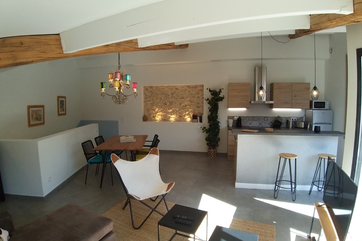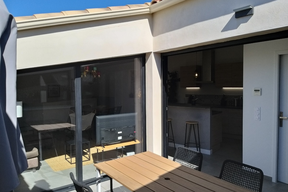 Découvrez « Le Tire-Bouchon » une maison de vacances à Maraussan pouvant accueillir quatre personnes. L’espace de vie comprend un séjour avec coin cuisine équipé : une cafetière, un micro-onde, un réfrigérateur-congélateur, un lave-linge privé, un Lave-vaisselle. Le salon est équipé d’une télévision, de la climatisation et d’une connexion wifi Pour le repos, vous trouverez une chambre Indépendante avec un lit de 160×200 cm, et une chambre Indépendante avec deux lits de 90×200 cm. Un cinquième couchage est disponible sur demande. Profitez également d’une terrasse avec salon de jardin, barbecue et plancha. Cette location saisonnière bénéficie d’une proximité immédiate avec tous les commerces nécessaires. Les animaux sont acceptés Cette maison de vacances est idéalement située dans l’Hérault pour vous offrir un séjour confortable et pratique