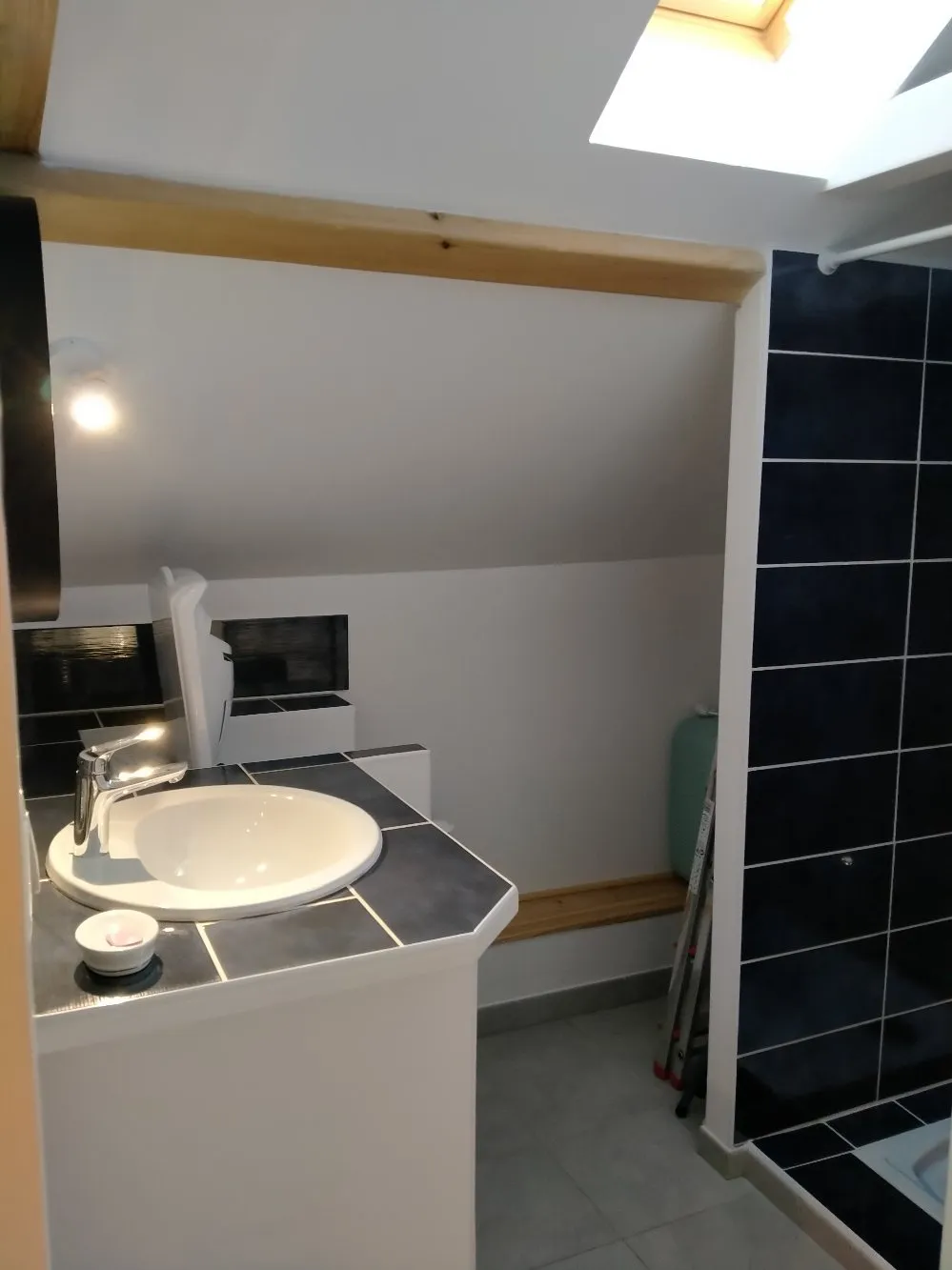L’étage est composé d’une chambre avec dressing, d’une salle d’eau et un WC séparé. A noter : l’accès à la douche est étroit.