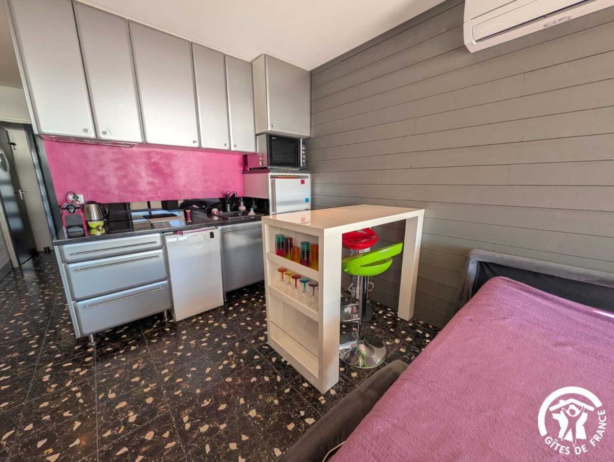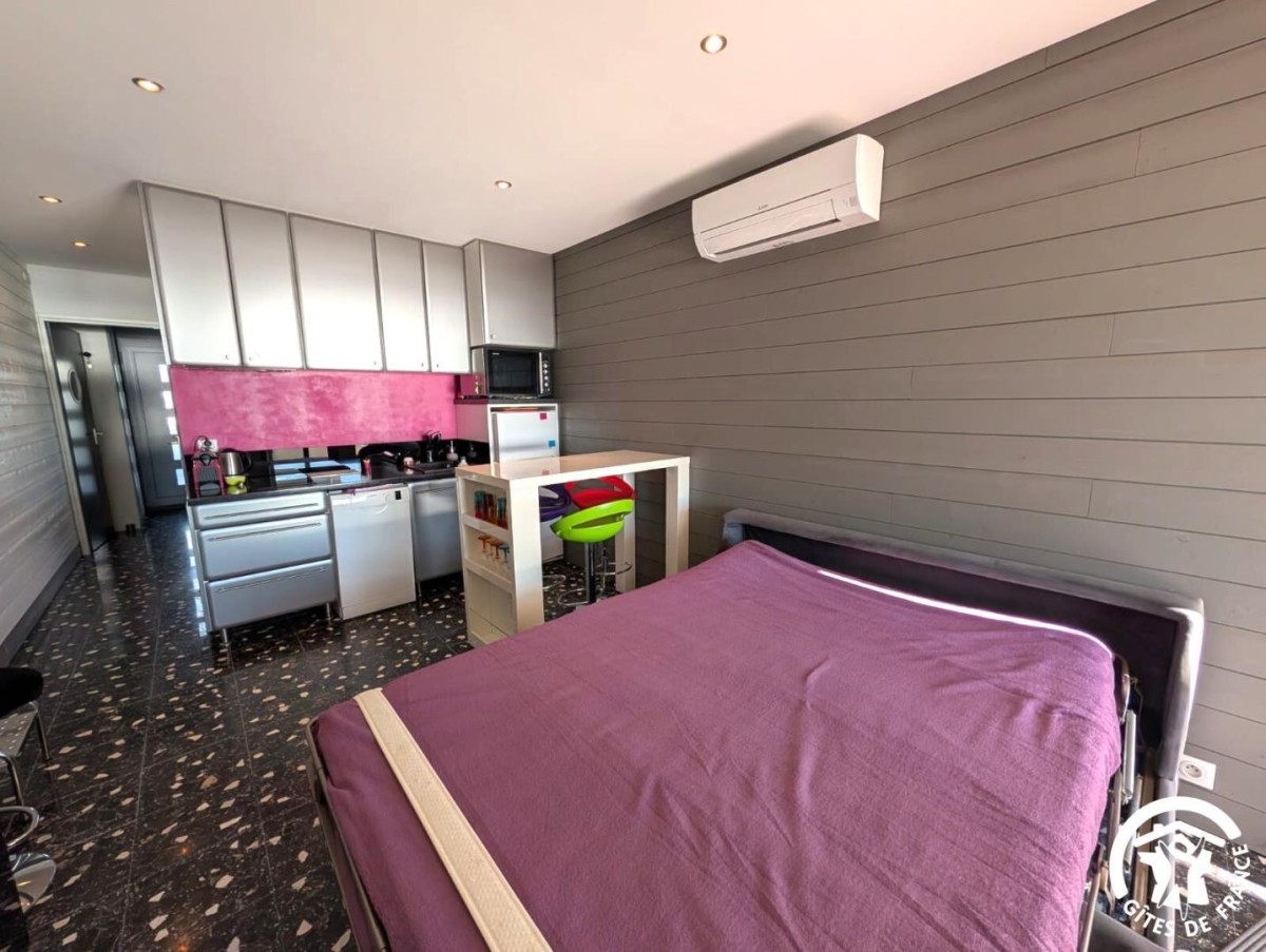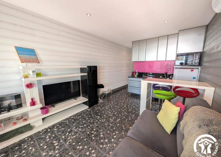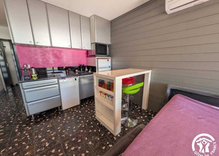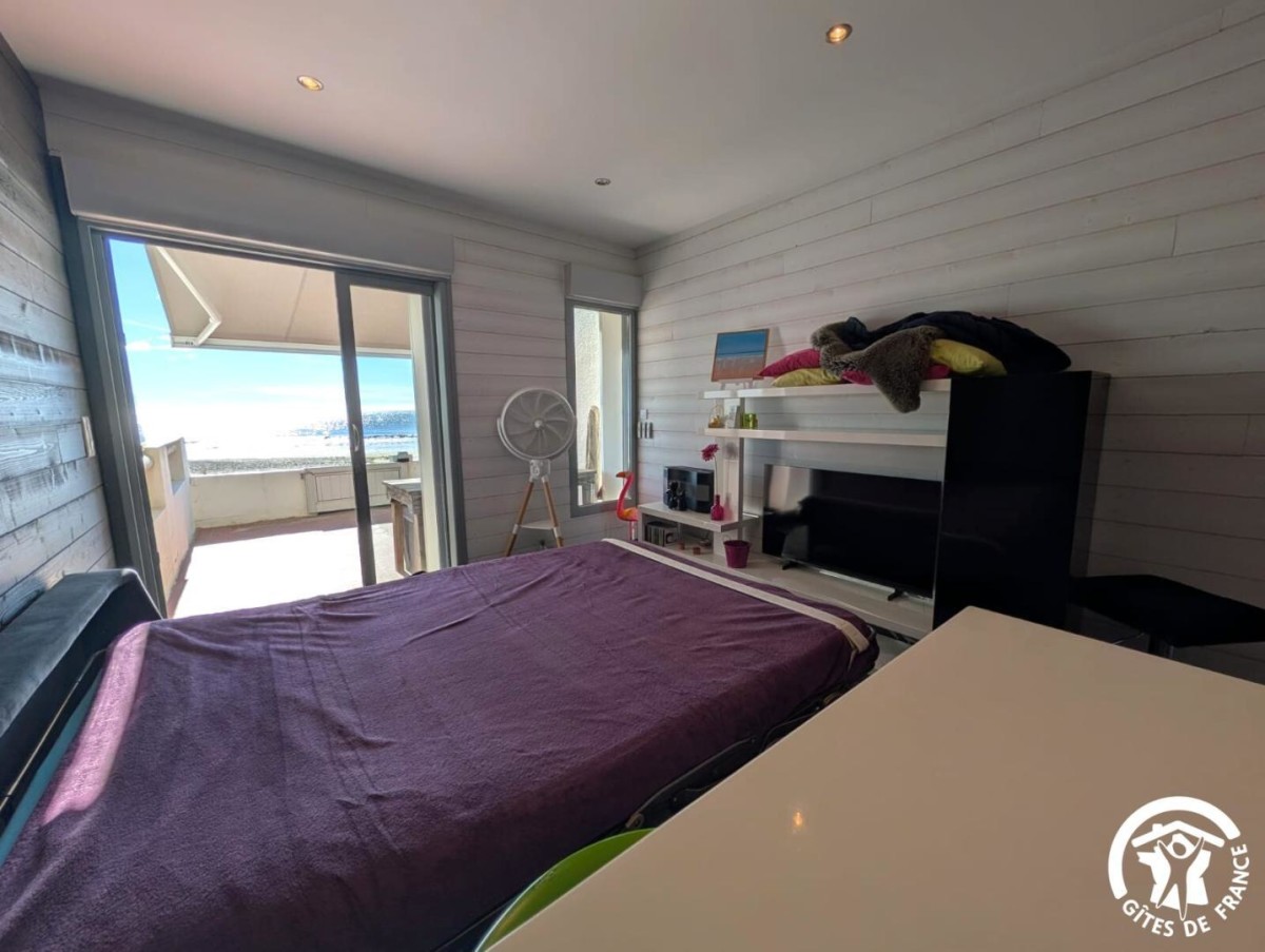 À Palavas-les-Flots, ce studio City Break vous offre une situation exceptionnelle : la terrasse de 12 m² s’ouvre littéralement sur la plage, vous permettant de vivre vos vacances au rythme de la mer. Vous séjournez ici au cœur d’un territoire où la Méditerranée se mêle à l’histoire et aux traditions locales. Depuis le gîte, vous pourrez visiter la charmante ville de Palavas-les-Flots et ses commerces, ou un peu plus loin profitez d’agréables villes côtières comme Carnon ou la Grande-Motte. Le studio se situe en rez-de-chaussée dans une petite résidence dotée d’une place de parking privative juste devant le logement, rendant votre séjour simple et confortable. L’espace de vie, contemporain et lumineux, comprend un salon avec canapé convertible (140×190 cm) et télévision. La cuisine ouverte est parfaitement équipée pour vos séjours en bord de mer : lave-vaisselle, réfrigérateur avec congélateur, mini-four combiné micro-ondes, bouilloire et cafetière Nespresso. La salle d’eau dispose d’une douche et vous disposerez également d’un WC indépendant pour plus de confort. Une particularité appréciable : un couchage en hauteur à l’entrée peut être proposé si vous souhaitez dormir séparément. La terrasse est sans conteste le point fort du gîte. Équipée d’un salon de jardin, elle vous permet de vivre au plus près de l’eau, avec la plage qui affleure directement le seuil. Vous profitez à tout moment d’une vue dégagée sur la mer, idéale pour vos repas, vos moments de détente ou simplement pour admirer les couleurs du littoral au fil de la journée. Ce studio moderne constitue le lieu parfait pour un couple ou des amis souhaitant un séjour pratique, agréable… les pieds dans le sable à deux pas de l’eau !