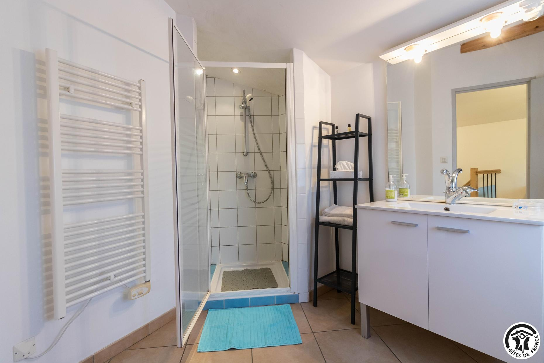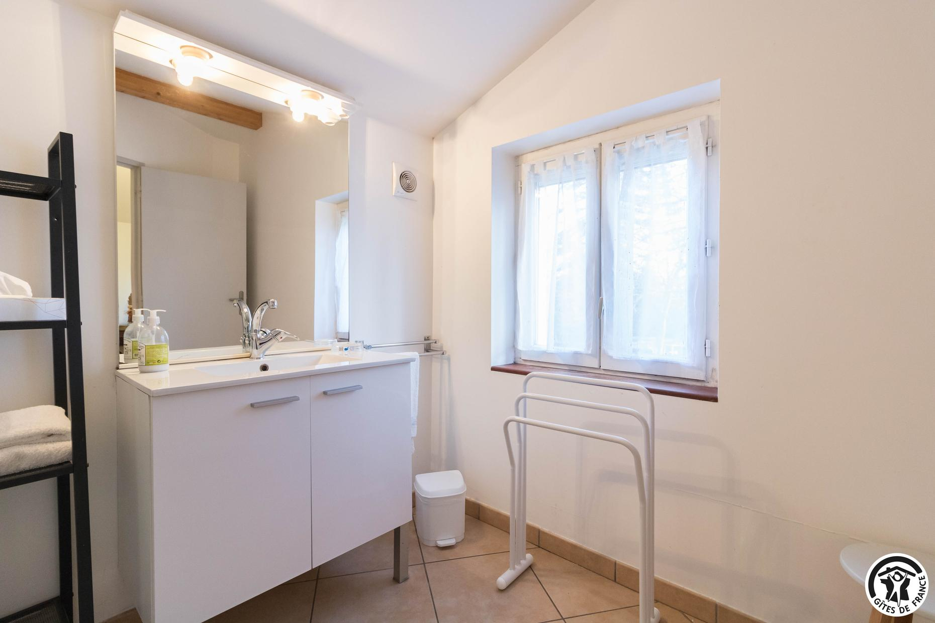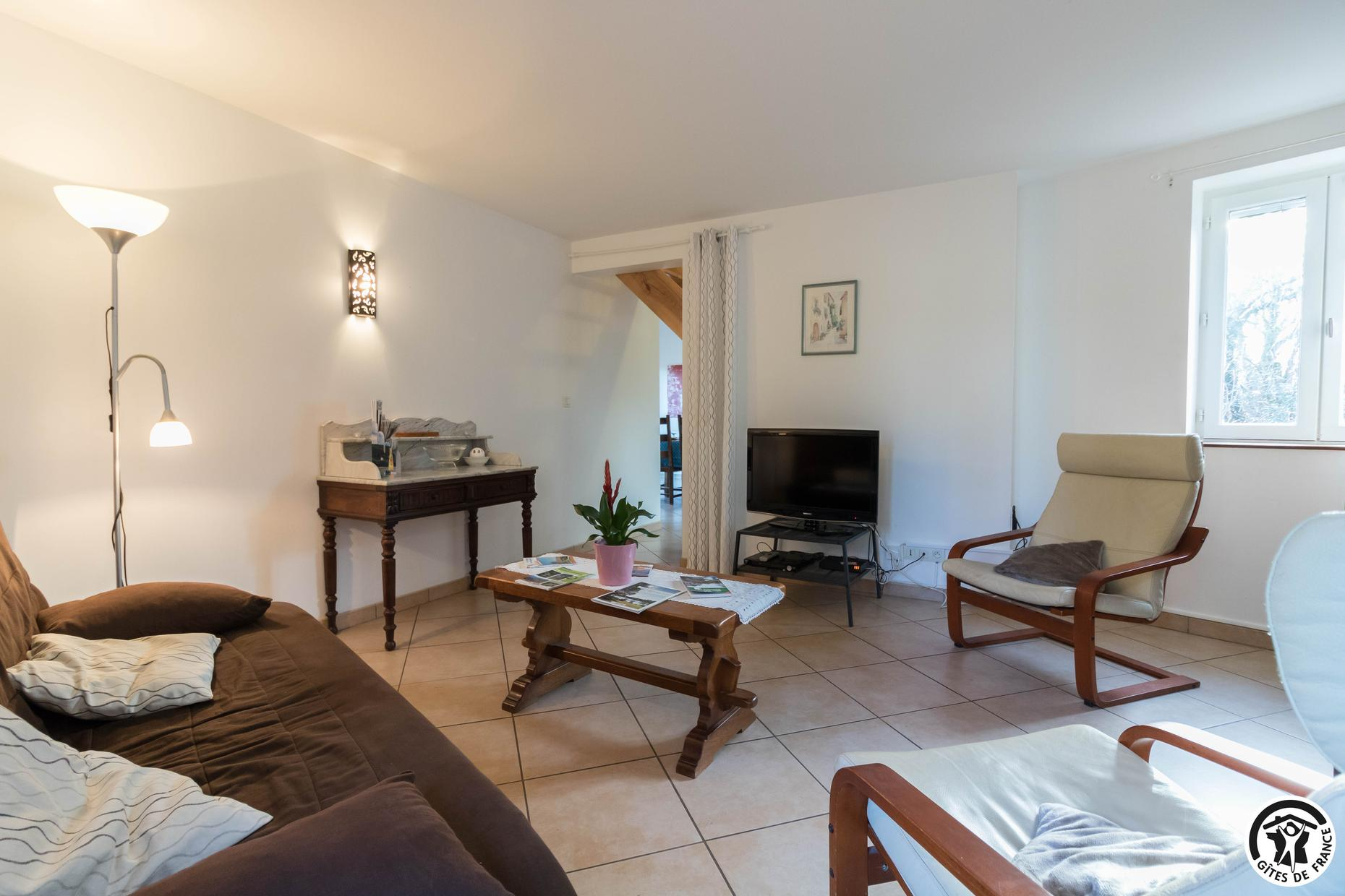 Rez-de-chaussée : séjour, cuisine avec coin-repas, salon, 1 chambre accessible par quelques marches (3 lits 1 personne en 90cm), WC, cellier/buanderie. Etage: palier desservant 1 chambre (1 lit 2 personnes en 140cm + 1 lit 1 personne en 90cm) et la salle d’eau. Chauffage électrique. Randonnée et balade en vélo sur place.