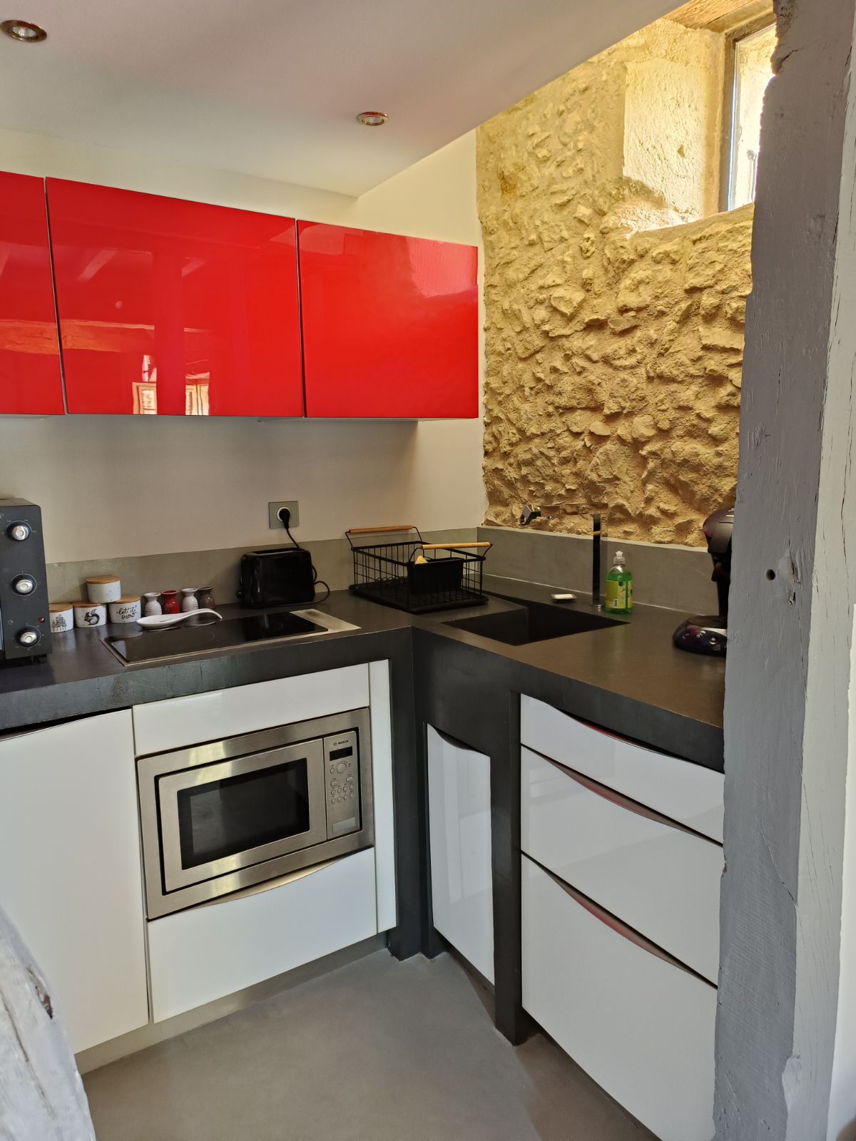La cuisine dispose de 2 plaques de cuisson, d’un four , d’un four micro-onde, d’un grille pain, d’un réfrigérateur et congélateur et de toute vaisselle et ustensiles nécessaires. Des torchons vous sont mis à disposition sans supplément.