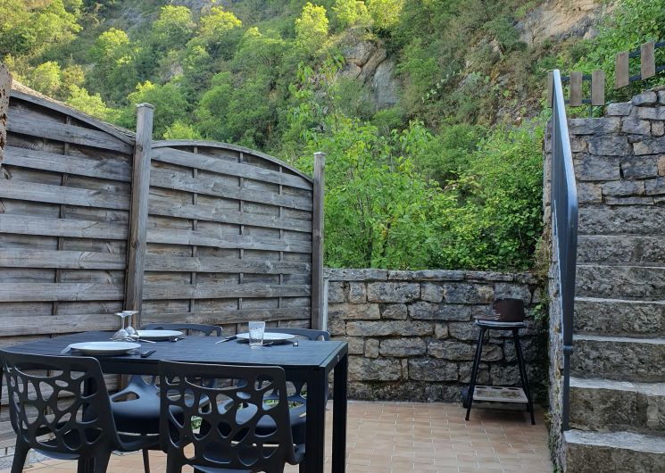 Maison ancienne indépendante rénovée dans le style du pays, située dans le site protégé des Gorges du Tarn. La plage et la rivière se situent à environ 200 m à pied ; un vaste plan d’eau vous y attend. Dans le village se trouvent un restaurant, une pizzeria ainsi qu’une crêperie. Sur place vous aurez la possibilité de pratiquer la pêche, le canoë kayak, la randonnée pédestre ou à VTT. Séjour avec cheminée (non utilisable ), coin cuisine avec lave vaisselle, lave linge, hotte, four, four micro ondes, plaques induction 2 feux, réfrigérateur avec compartiment congélateur, cafetière, grille pain, 1 chambre en mezzanine avec d’un côté un lit 2 places en 140 et de l’autre un canapé BZ en 120 avec espace TV couleur et TNT, WC indépendant , salle d’eau chauffage électrique, terrasse avec barbecue et table en bois, terrain clos avec 2ème table et chaises pour manger dans le jardin, parking privé. WIFI gratuit (fonctionne uniquement sur la terrasse).