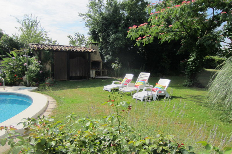 A l’étage, une chambre avec un lit 140, une chambre avec fenêtre basse, 2 lits 90. Chauffage électrique et insert, salon de jardin, grand espace vert ombragé et fleuri, portique pour enfants,trempoline, 2 abris voiture, PISCINE PRIVEE ( forme haricot 14 m), barbecue.