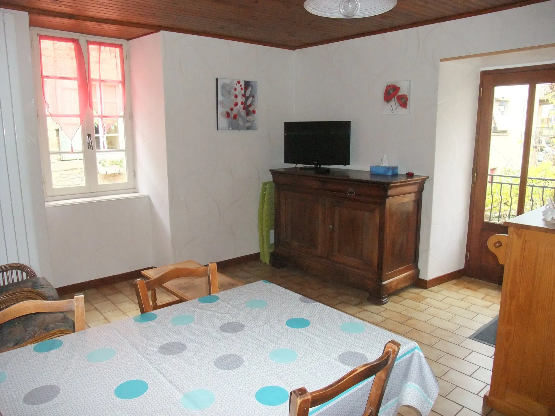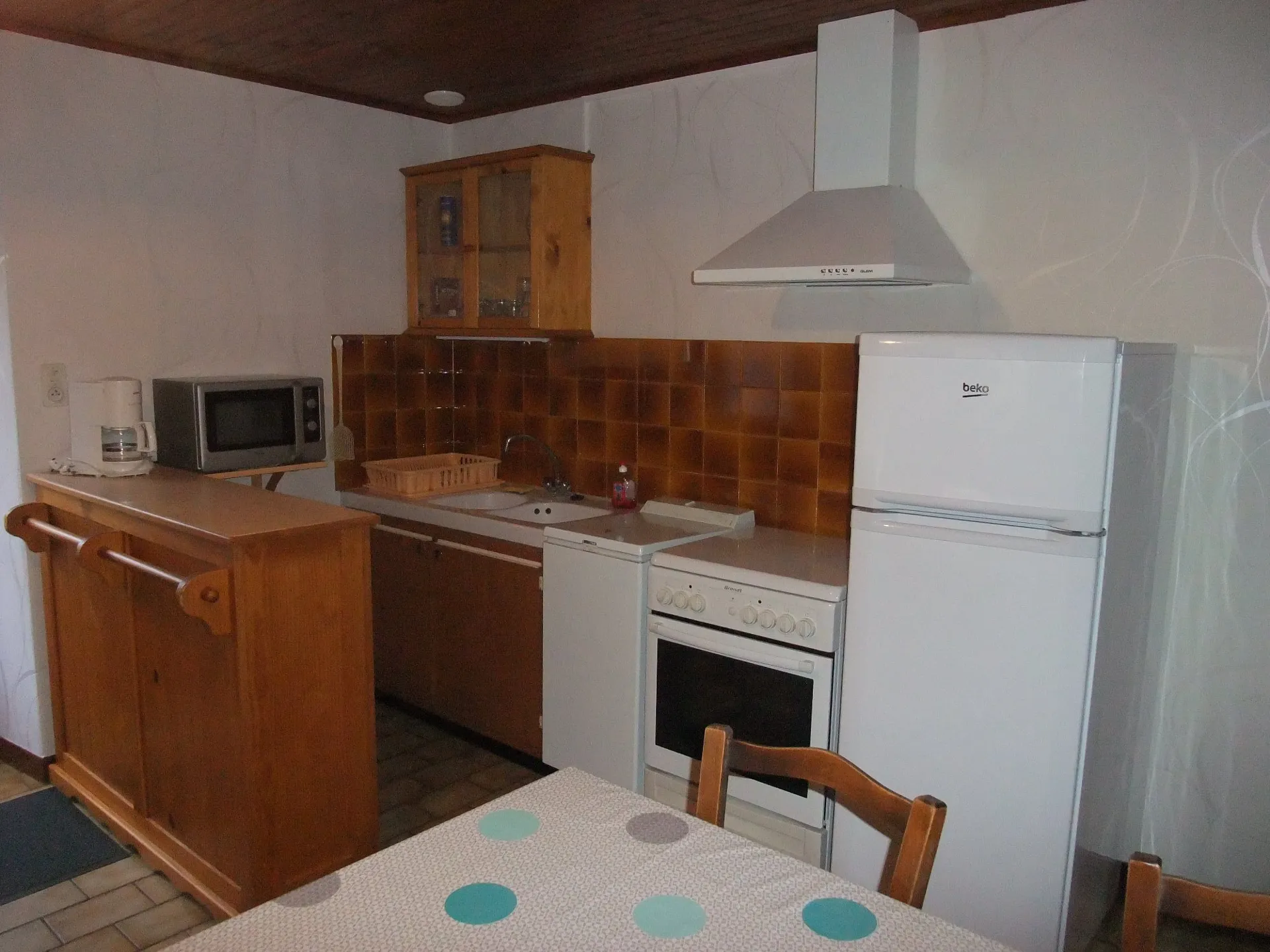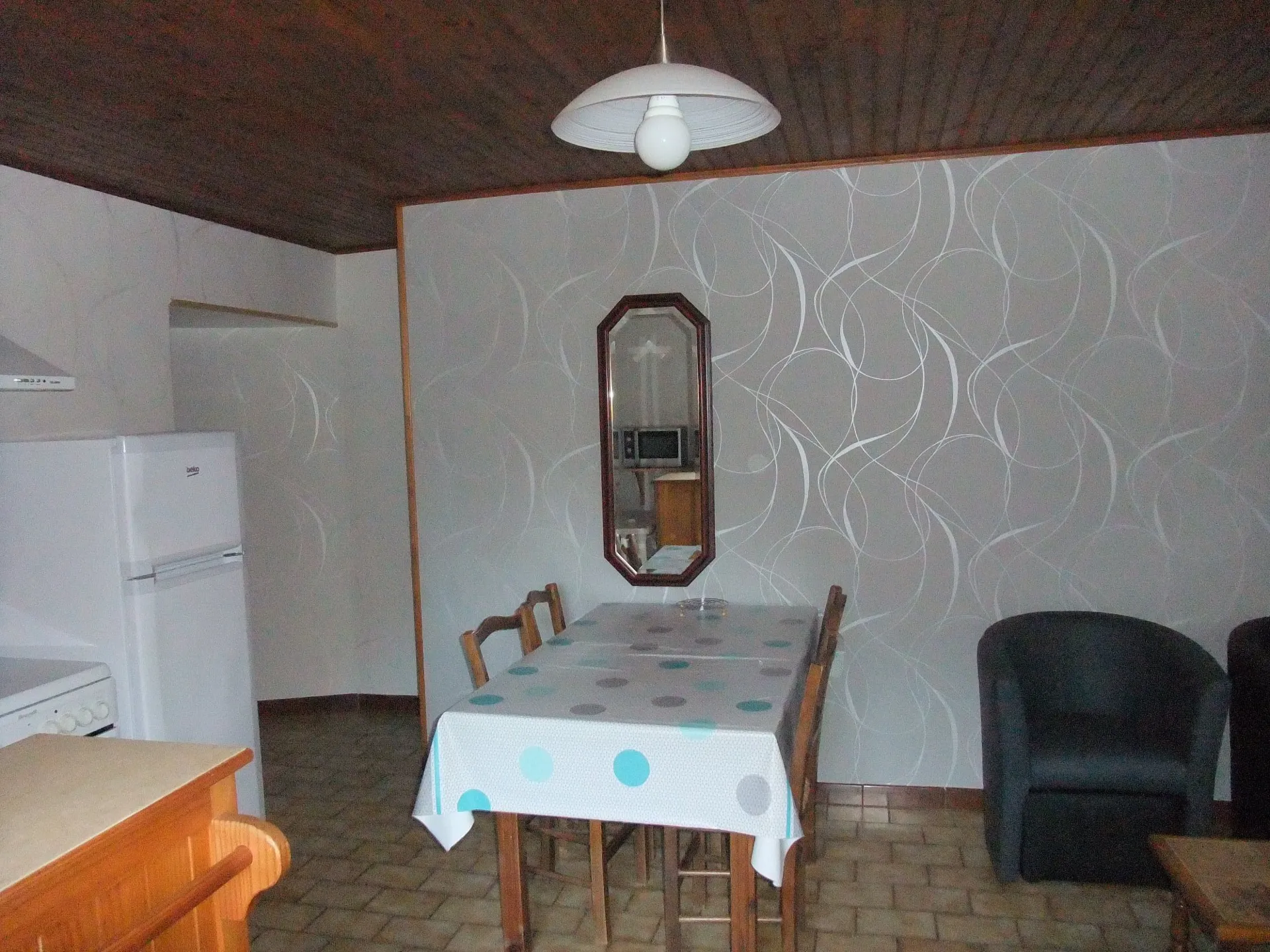 Maison mitoyenne (45 m²), 1er étage, 2 chambres (2 lits 140, 1 lit 90). Salle d’eau. Cuisine (gazinière, four micro-ondes, frigo congélateur et tout le nécessaire), séjour (télévision, fauteuils, lave-linge), chauffage électrique. Balcon, petite cour, salon de jardin, barbecue. Location de draps, taxe de séjour. Commun : piscine chez le propriétaire à 400 m, accès libre. Possibilité de louer un autre gîte à proximité.