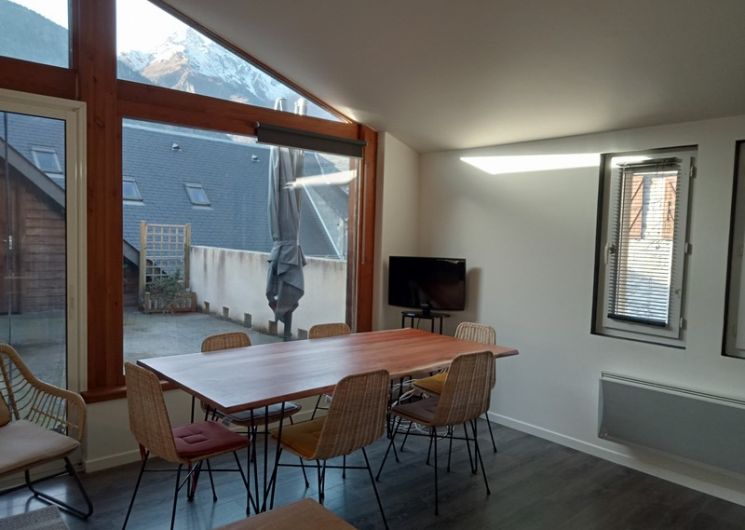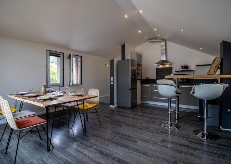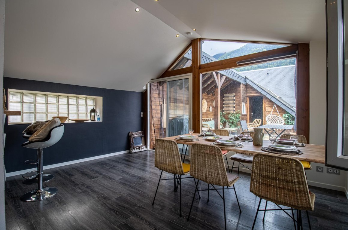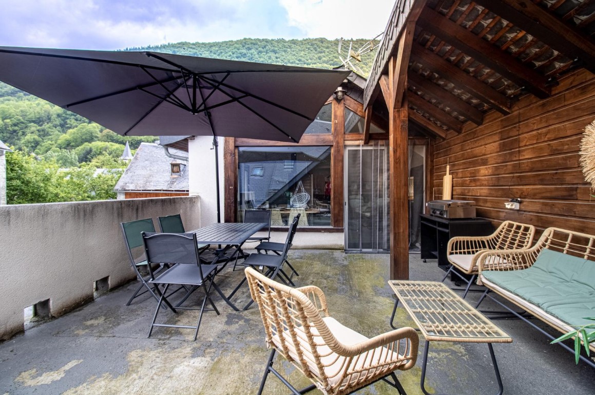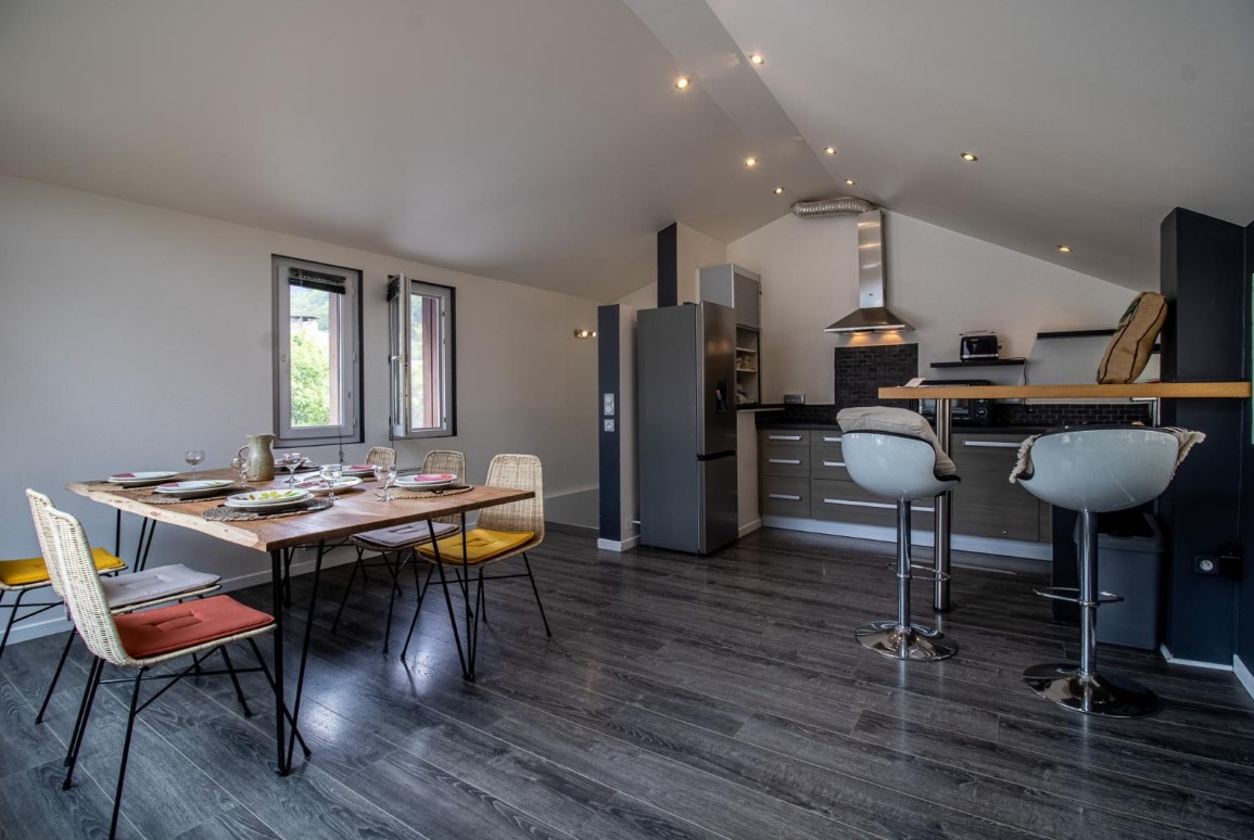 Dans une cour commune après un charmant porche, le Gite Los Montanhoùs vous ouvre ses portes. Sur deux niveaux vous retrouverez 3 chambres, une en rez de chaussée avec 1 lit 140×190, une en demie étage avec 2 lits 90×190 et une dernière chambre parentale accolé à celle des enfants avec 1 lit 160×200. Salle d’eau avec douche et vasque en rez de chaussée, wc indépendant. Au premier étage, une cuisine intégrée et équipée ouverte sur la salle à manger. Charmante terrasse aménagée avec point de vue sur les montagnes avoisinantes. Charges comprises, draps fournis. 3 abris garage couverts à disposition des locataires. .