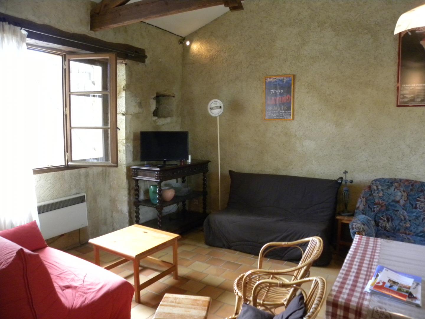 Cette grande maison en pierre de 90 m2 (rdc+étage), est mitoyenne à la Mairie, elle dispose d’une terrasse cimentée de 9 m2, et d’un espace vert arboré et fleuri privatif de 200m² en partie clôturé.