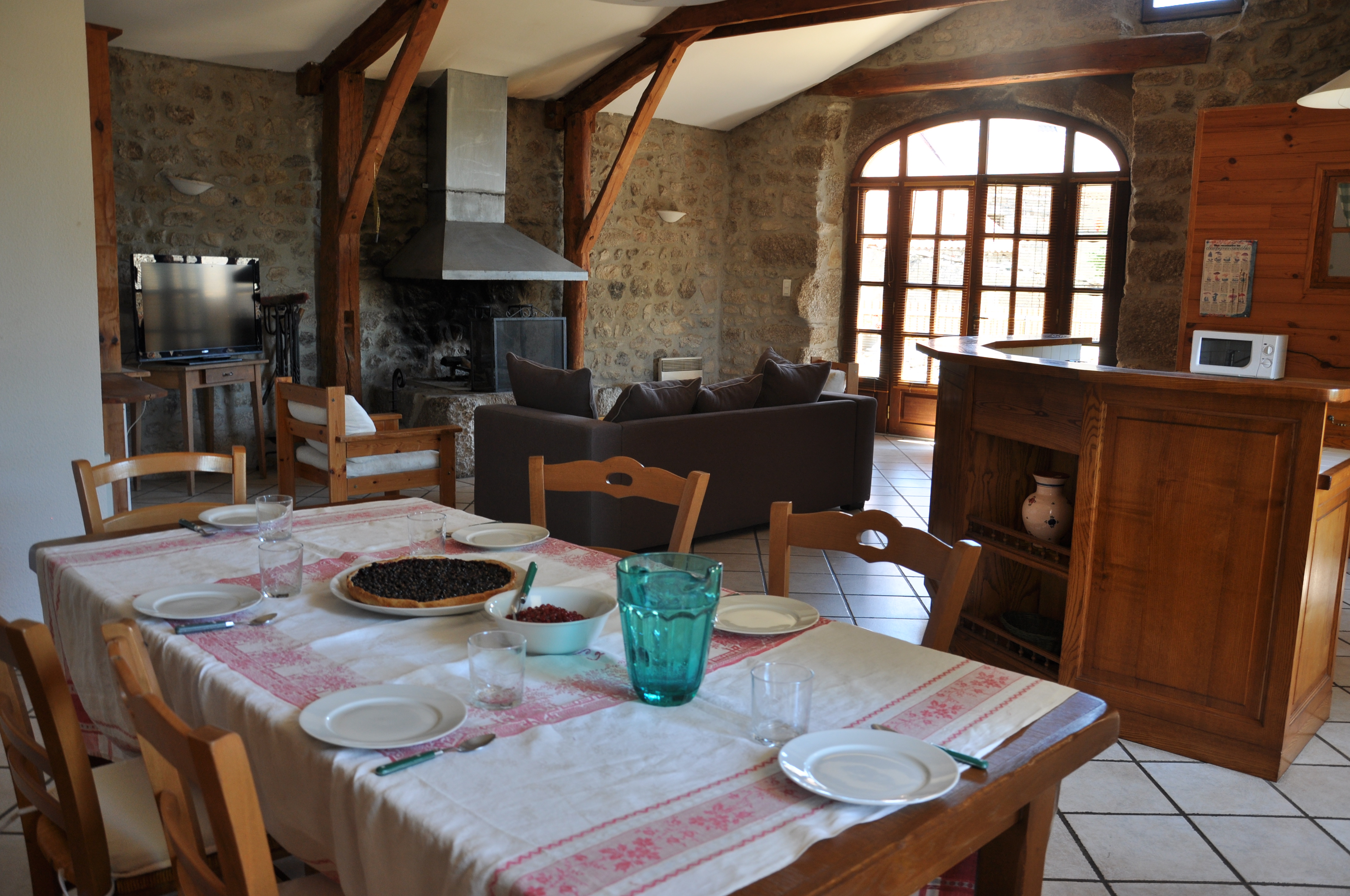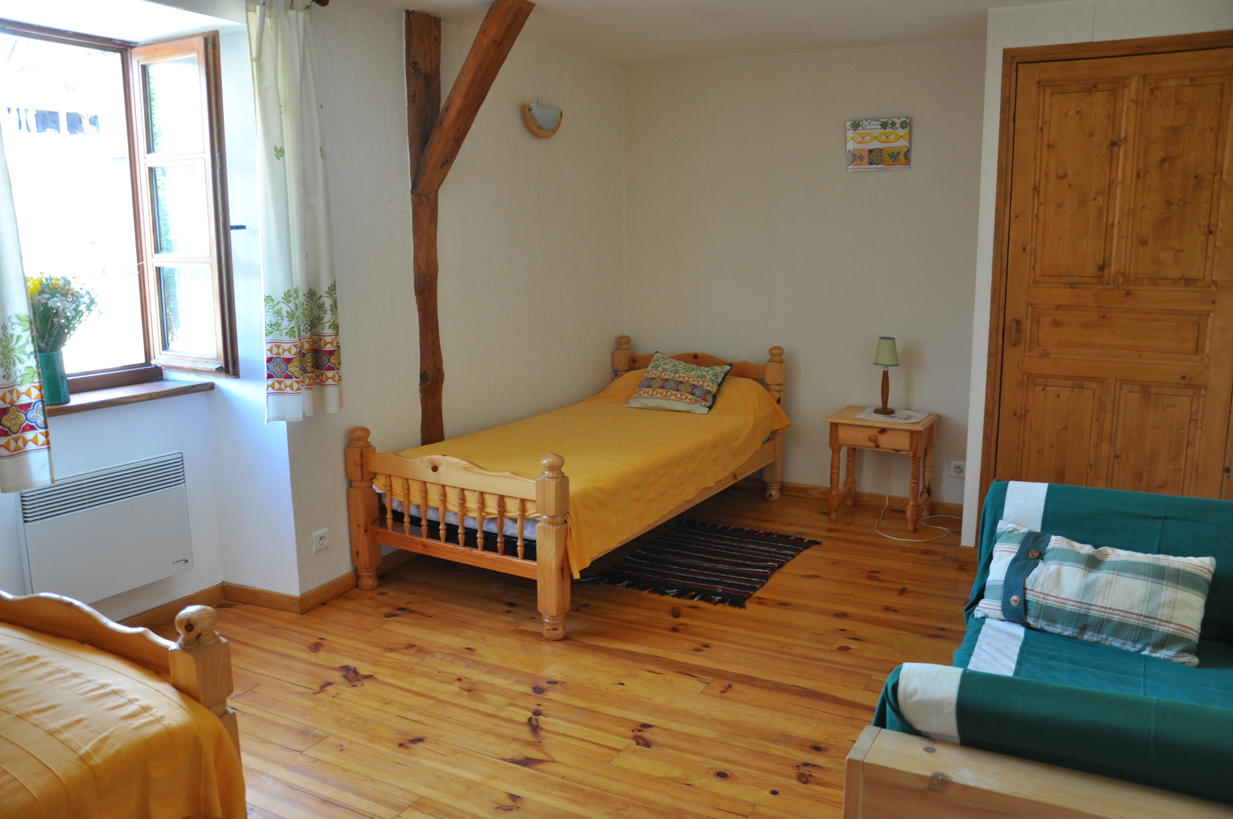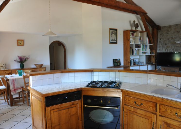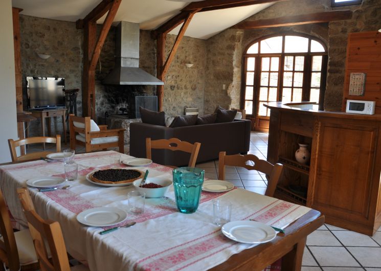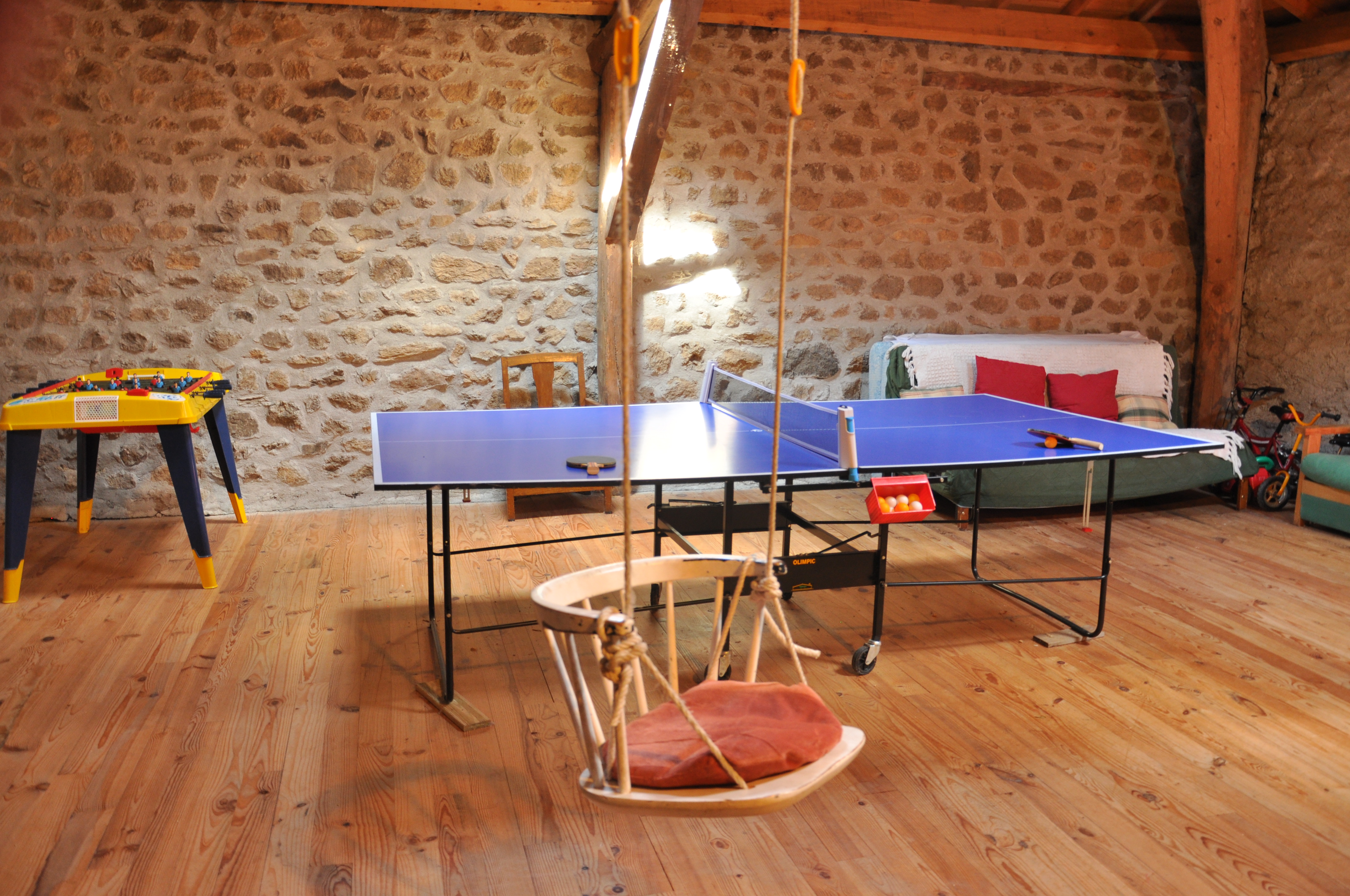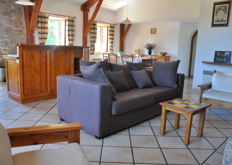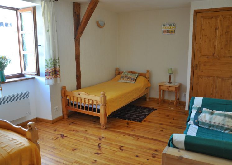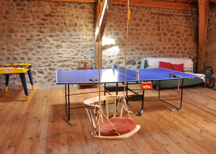 Gîte indépendant situé en bordure du hameau. Ancienne grange, spacieuse, de plain-pied. Portique pour les enfants. Salle de séjour, cheminée, téléphone, coin cuisine, lave-vaisselle, micro-ondes, congélateur. 1 ch (1 lit 2 pl), 1 ch (2 lits 1 pl), 1 ch (2 lits en 80 transformables en 160), 2 lits bébé, salle de bains, lave-linge, sèche-linge, chauffage central+ chauffage d’appoint, TV couleur. Terrain clos de 180 m² ombragé, barbecue, salon de jardin, parking privé. Salle de jeux (55m²) sur le même niveau, ping-pong, balançoire, jeux de société, lectures.