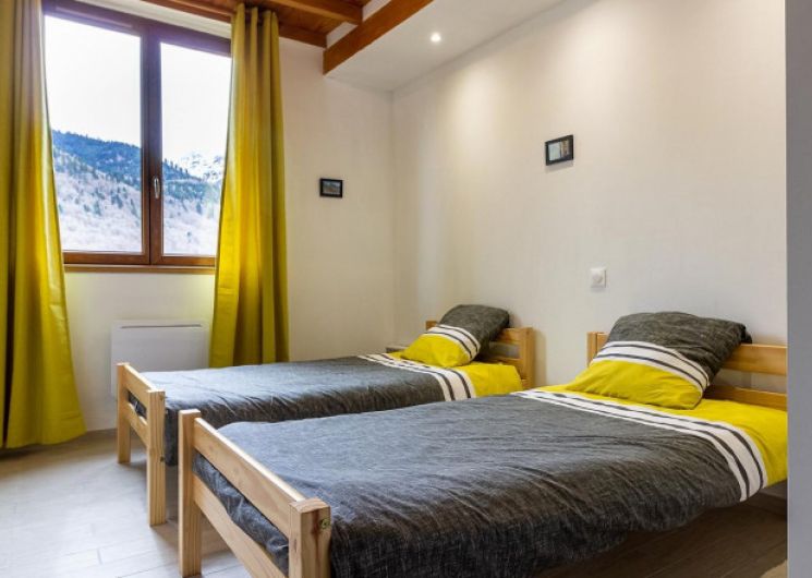 En rez-de-chaussée : séjour/coin-cuisine avec poêle à bois, buanderie, cellier, chambre (1 lit en 160), salle d’eau, wc indépendant. En étage, 3 chambres (1 lit en 140) (1 lit en 160) (2 lits en 90), salle d’eau avec wc. Parking privatif, jardin non clos. Chauffage électrique et bois (1/2 stère offert). .