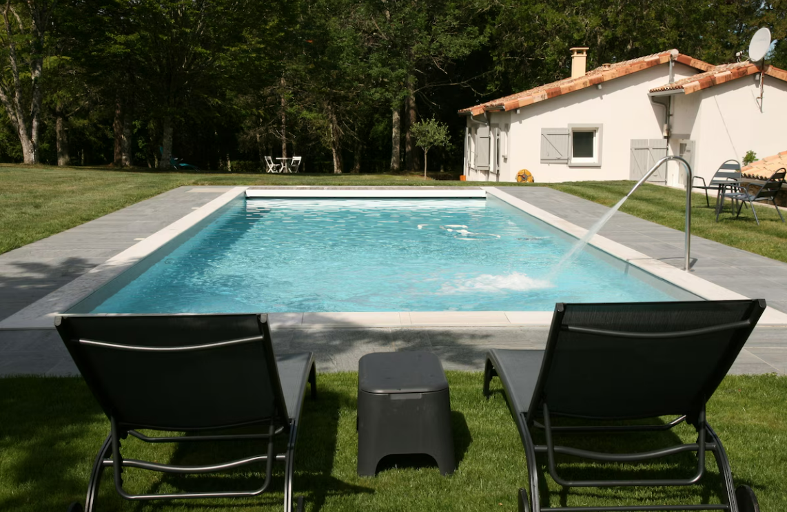 Piscine partagée avec les propriétaires 13 m x 4,5 m, chauffée à 26° mini, avec volet roulant électrique (sécurité totale enfant).
