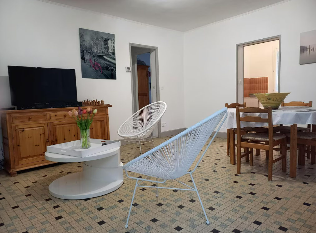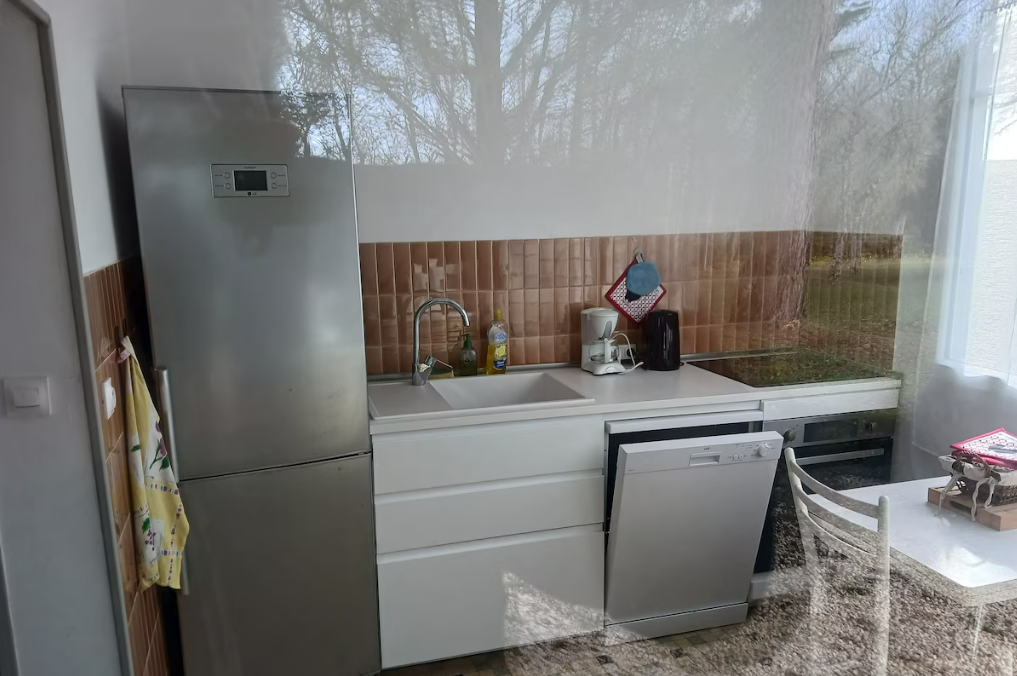 Une maison indépendante et sans vis à vis avec la maison des propriétaires. En pleine campagne, dans une ancienne ferme de 1841 sur 4 hectares entretenus et fleuris accessible en totalité.