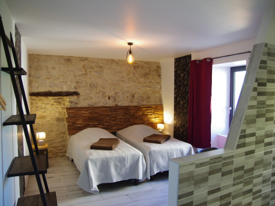 Le gîte Muscat est composé d’une chambre avec 2 lits simples x90 ou un lit double en 180, une douche à l’Italienne. Puis une chambre parentale cosy avec 1 lit double x160, douche à l’Italienne.