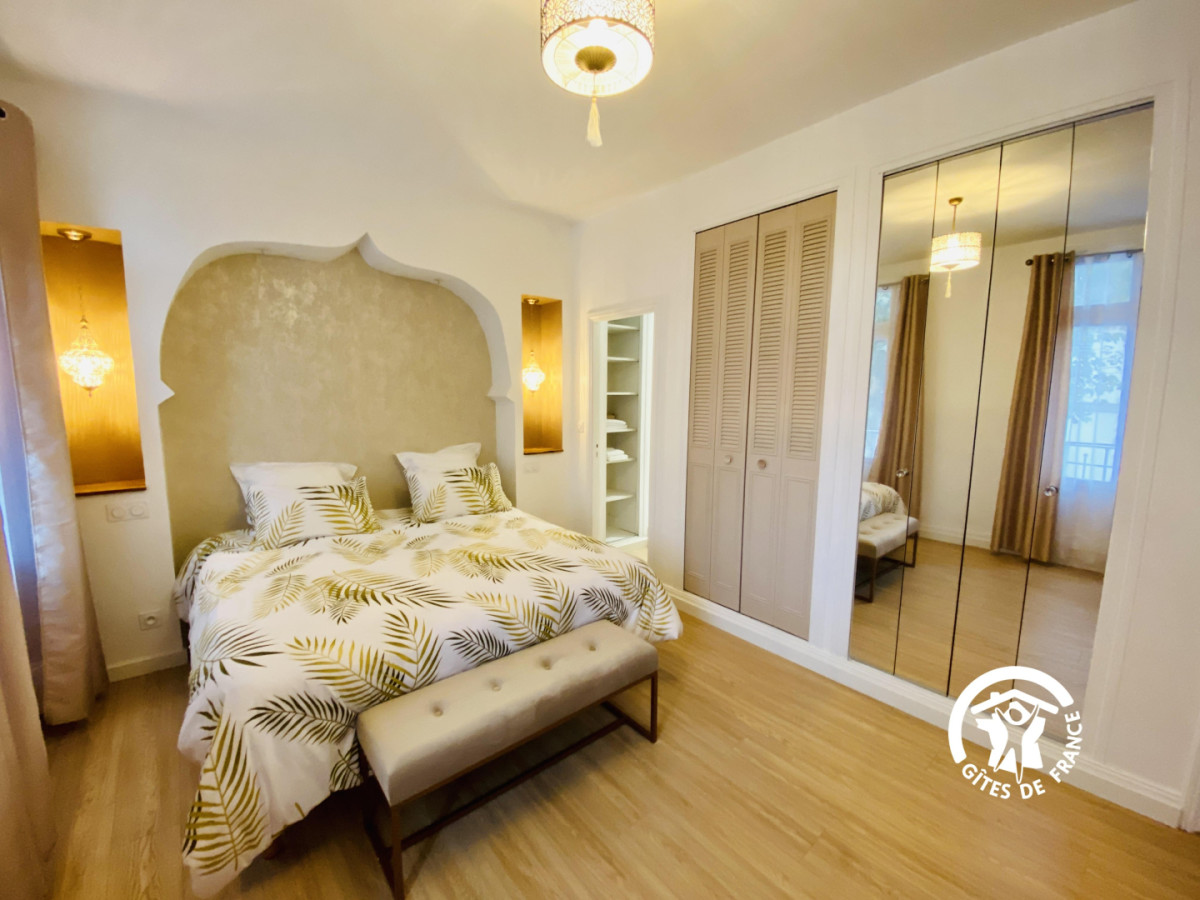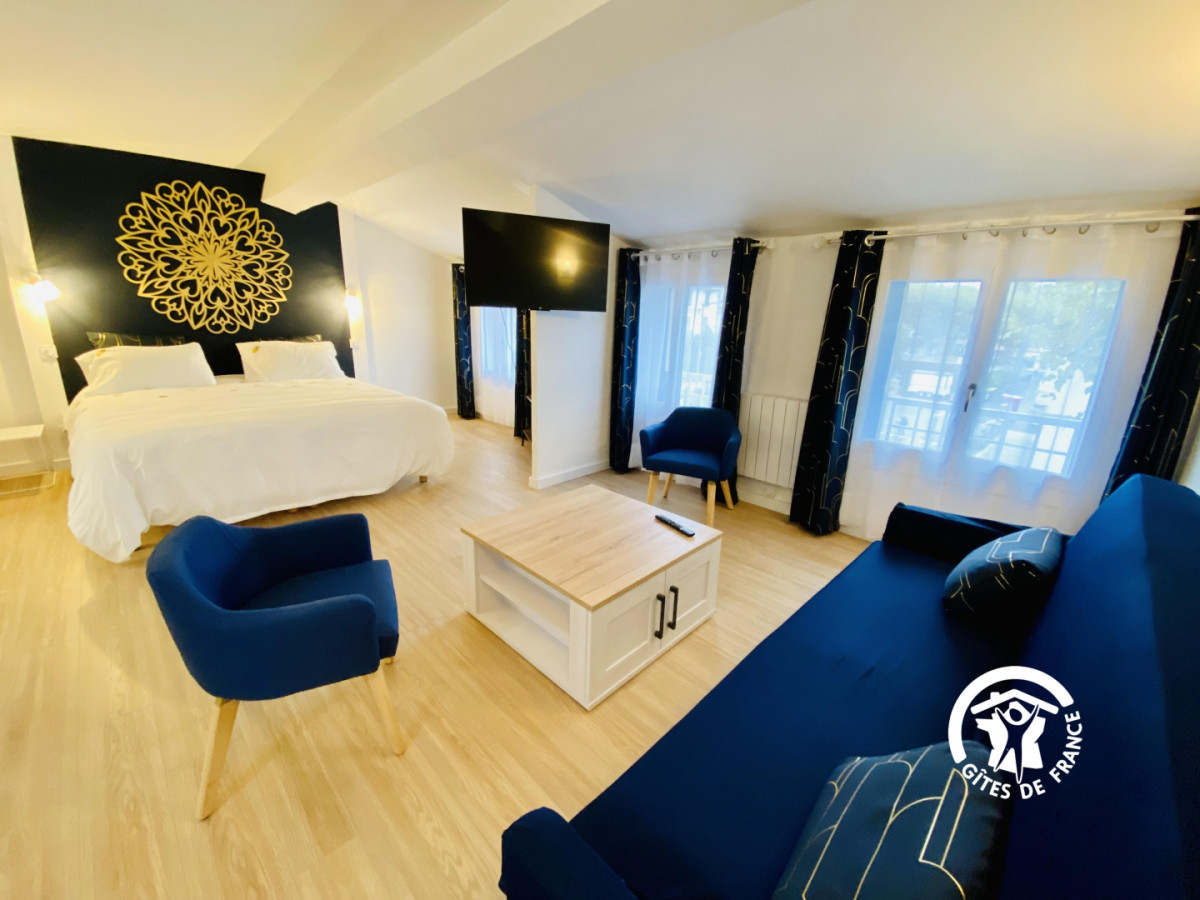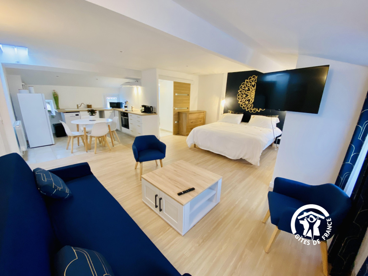 Sa situation est idéale pour tout visiter à moins de 30 minutes: La Cité Médiévale de Carcassonne ou de Fanjeaux, les magnifiques paysages naturels de la montagne Noire ou du Lauragais, l’Abbaye de Saint-Papoul ou encore la découverte de la gastronomie locale incontournable (cassoulet, vins…). En étant situé en plein centre de Castelnaudary, vous pourrez tout faire à pieds que ce soit pour aller au restaurant, faire vos courses ou aller à la boulangerie. Le Canal du Midi est accessible à pieds par un trajet de 5 minutes où de belles promenades sont à faire le long des quais que ce soit à vélo ou à pieds. De nombreuses places de stationnement gratuites pour les voitures sont également situées dans la rue du gîte. Sur place, attenant au gîte, profitez d’un établissement de bien-être accessible en supplément à un tarif préférentiel: sauna, hammam, spa, massages. L’accès à la piscine est gratuite lors de votre séjour. Gîte climatisé: Rez-de-chaussée: – Séjour avec un coin salon disposant d’un canapé avec TV, un espace salle à manger. 1er étage: – une cuisine, – Chambre 1 : lit 160x200cm avec sa salle d’eau privative et attenante (douche, WC) ainsi qu’une TV et un coin bureau. – Chambre 2: lit 180x200cm avec sa salle d’eau privative et attenante (douche, WC indépendant), une Tv et un coin bureau. 2ème étage: – Chambre 3: lit 180x200cm et une salle d’eau privative et attenante (douche, lavabo et WC) et une TV avec un coin bureau. – Un studio indépendant équipé d’un lit 180x200cm, un petit coin salon avec fauteuils, canapé-lit pour 2 personnes supplémentaires et TV, une cuisine ouverte et toute équipée avec une table à manger ainsi qu’une salle d’eau privative et attenante avec douche et WC. Nos amis les animaux sont acceptés uniquement sur demande auprès du propriétaire et sous conditions (supplément de 20€/animal). Possibilité de petit déjeuner en option à régler sur place (12€).