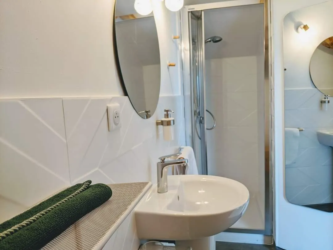 1 lit en 160 + 2 lits en 90, 2 salles de bain avec douche, 1 wc indépendant au rez-de-chaussée, 1 clic clac sur la mezzanine, cuisine équipée (micro-ondes, four, plaques de cuisson, frigo, congélateur, machine à café), lave-linge, équipement pour bébé. Grand espace vert, terrasse et barbecue.