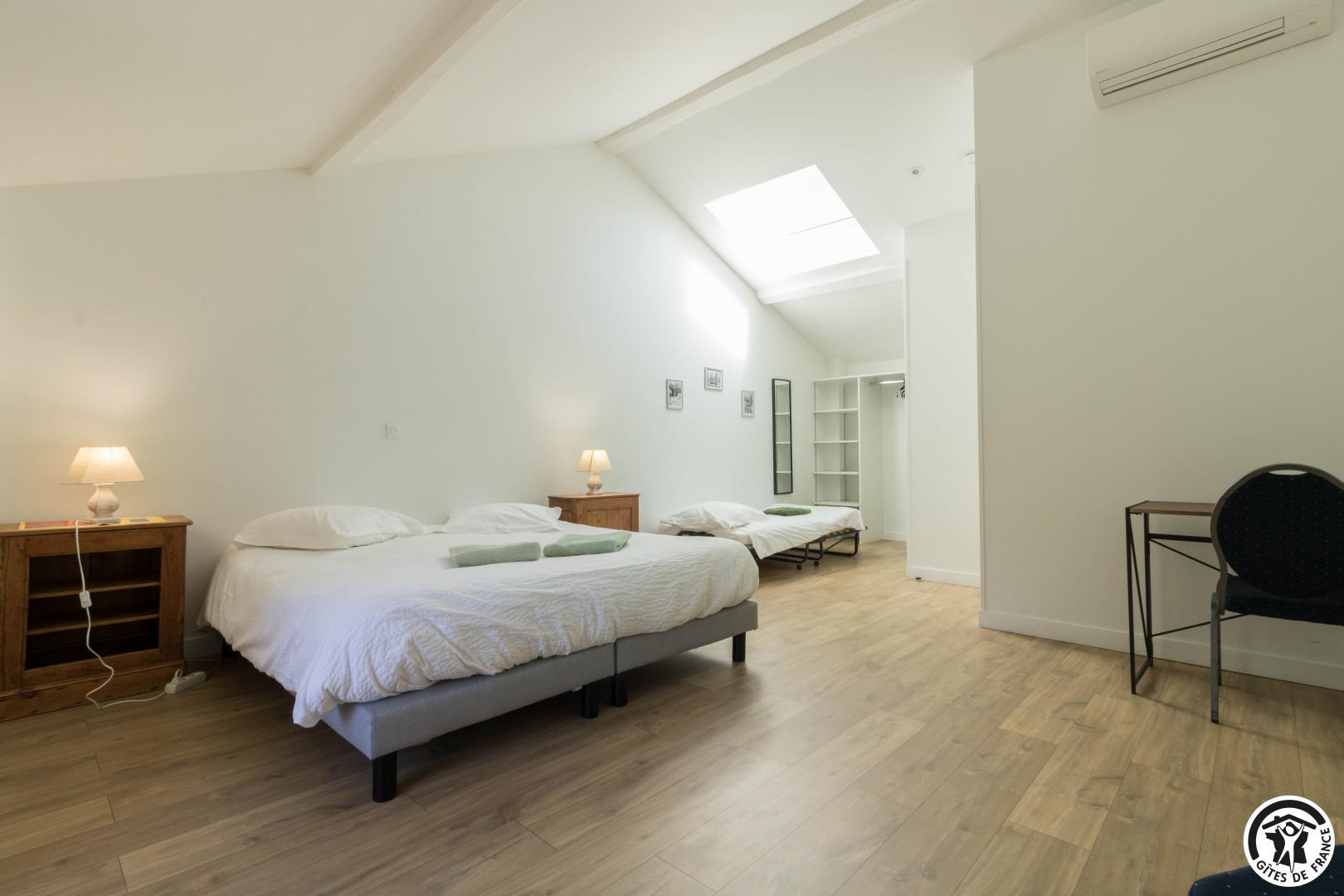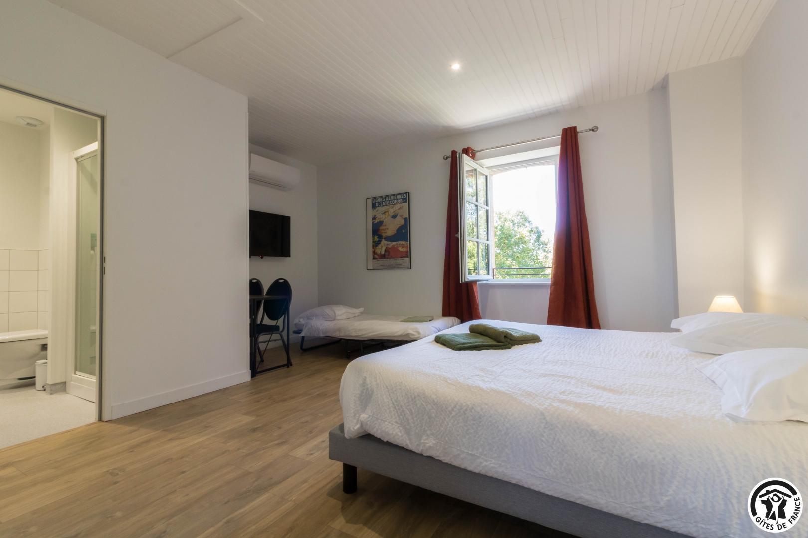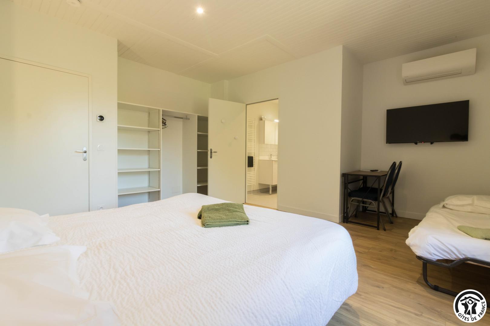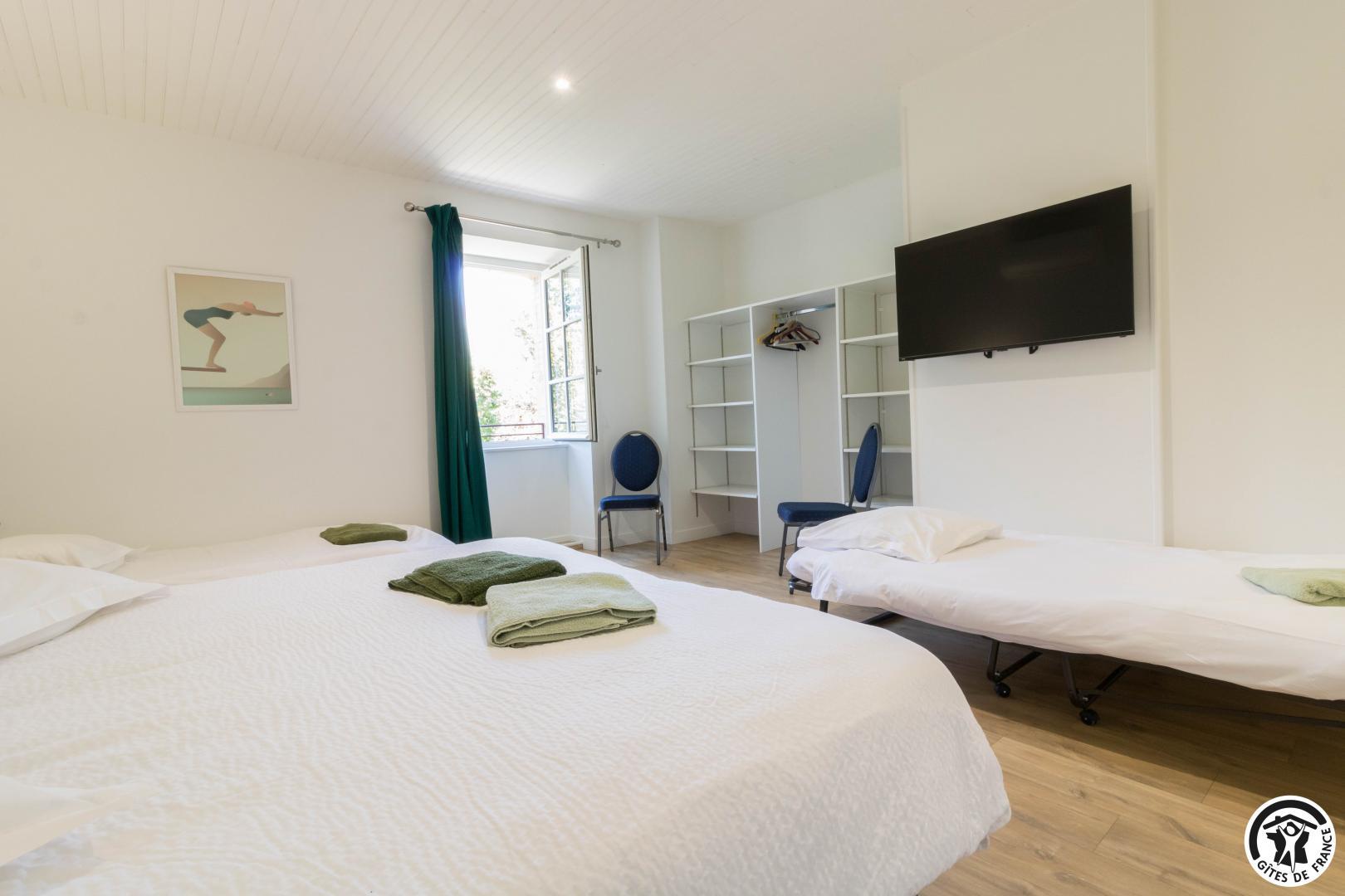 Au rez-de-chaussée : entrée, cuisine, salle de séjour avec coin-repas et espace détente. Buanderie (lave-linge et sèche-linge), WC indépendant, chambre avec salle d’eau/WC privative. A l’étage : un couloir dessert trois chambres supplémentaires avec chacune leur salle d’eau/WC. Chaque chambre propose 3 lits 1 personne en 90cm, dont 2 jumelables. TV, accès Internet wifi, bureau et climatisation réversible dans toutes les chambres.