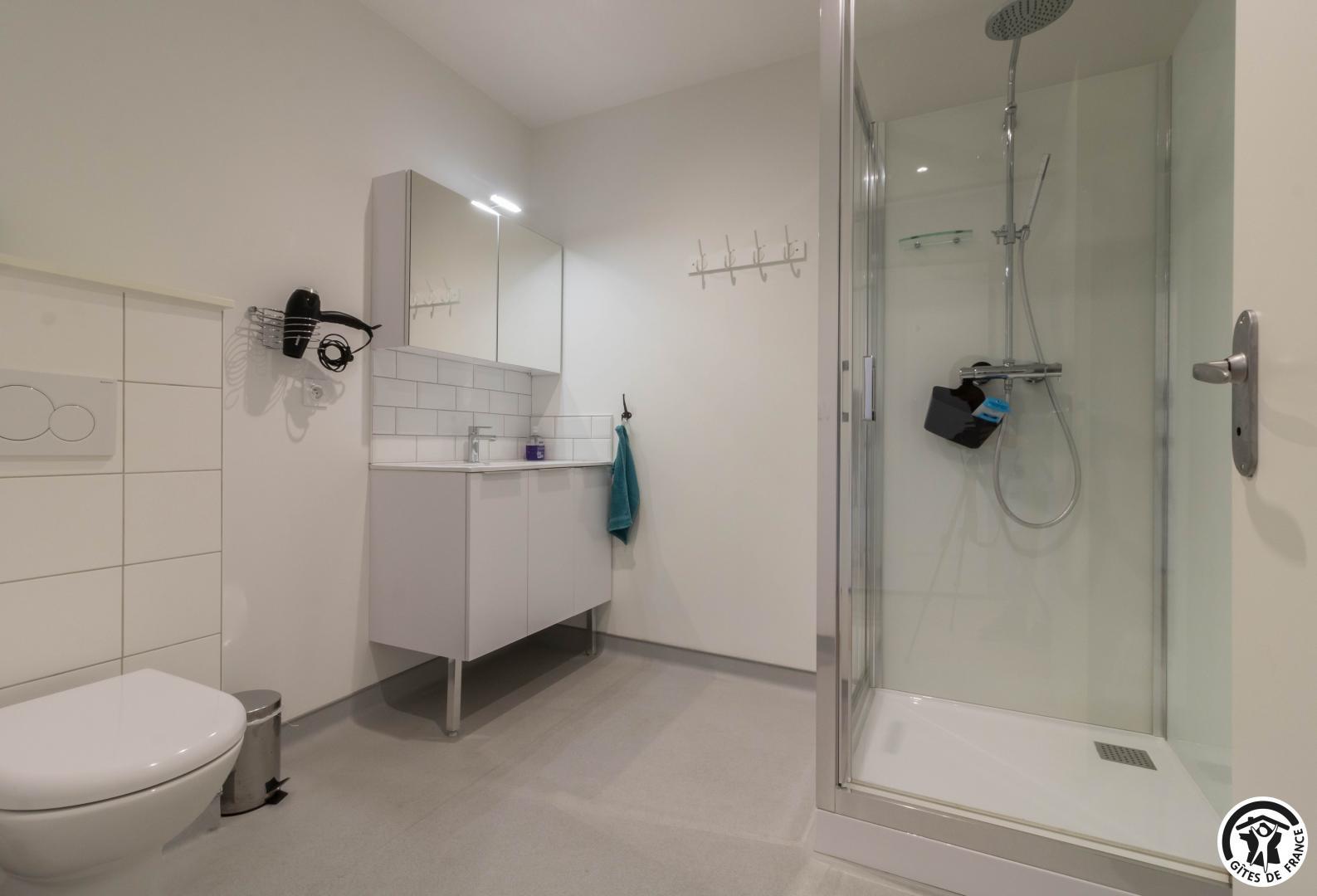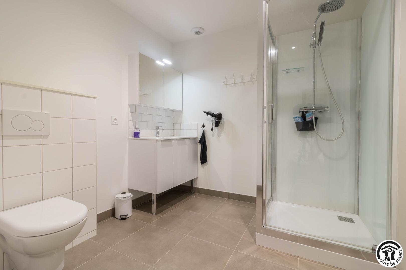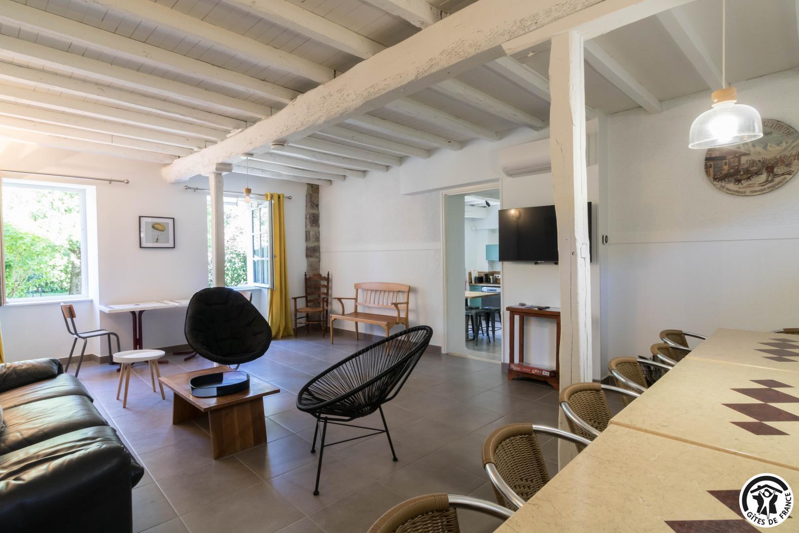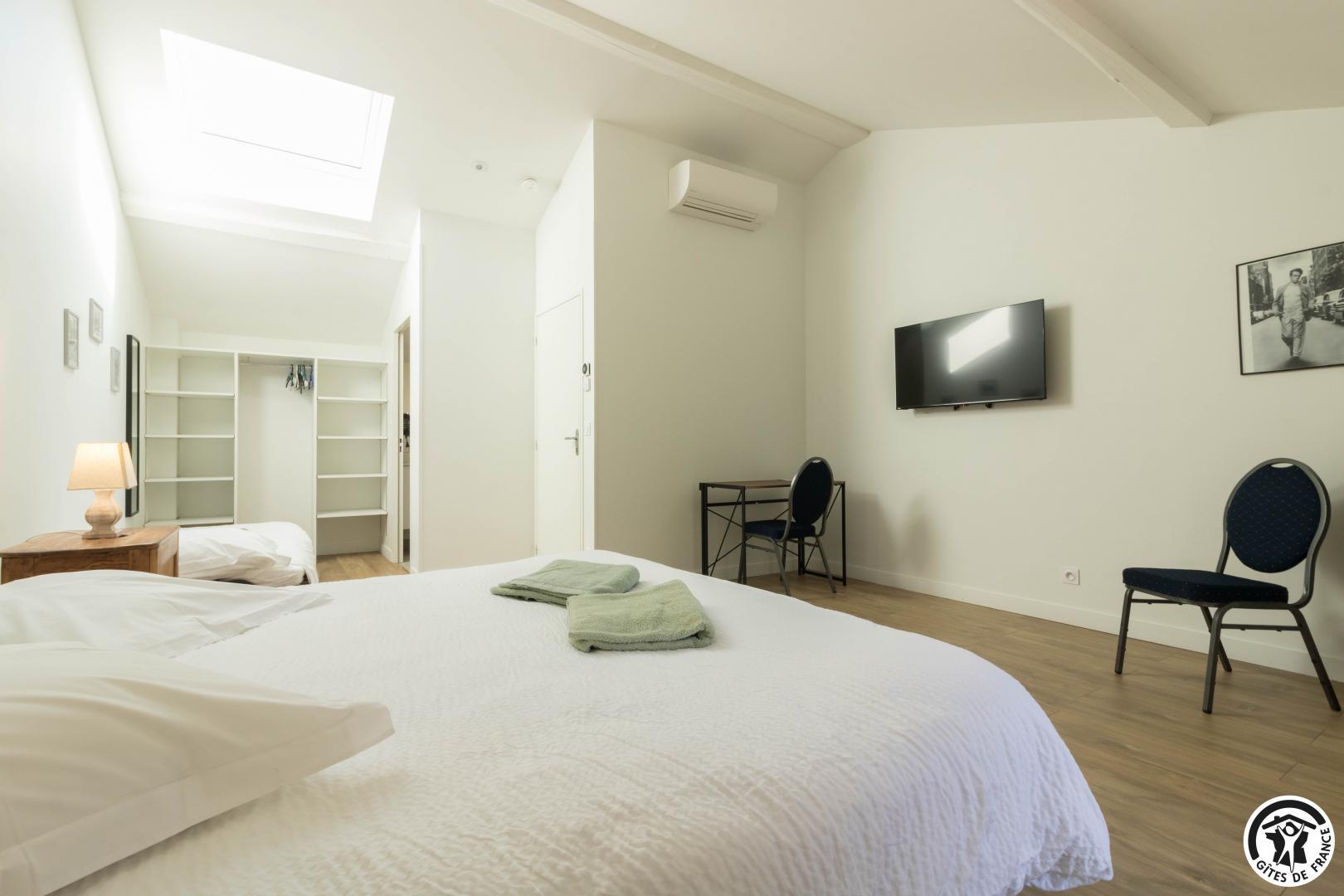 Au rez-de-chaussée : entrée, cuisine, salle de séjour avec coin-repas et espace détente. Buanderie (lave-linge et sèche-linge), WC indépendant, chambre avec salle d’eau/WC privative. A l’étage : un couloir dessert trois chambres supplémentaires avec chacune leur salle d’eau/WC. Chaque chambre propose 3 lits 1 personne en 90cm, dont 2 jumelables. TV, accès Internet wifi, bureau et climatisation réversible dans toutes les chambres.