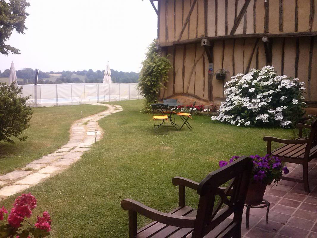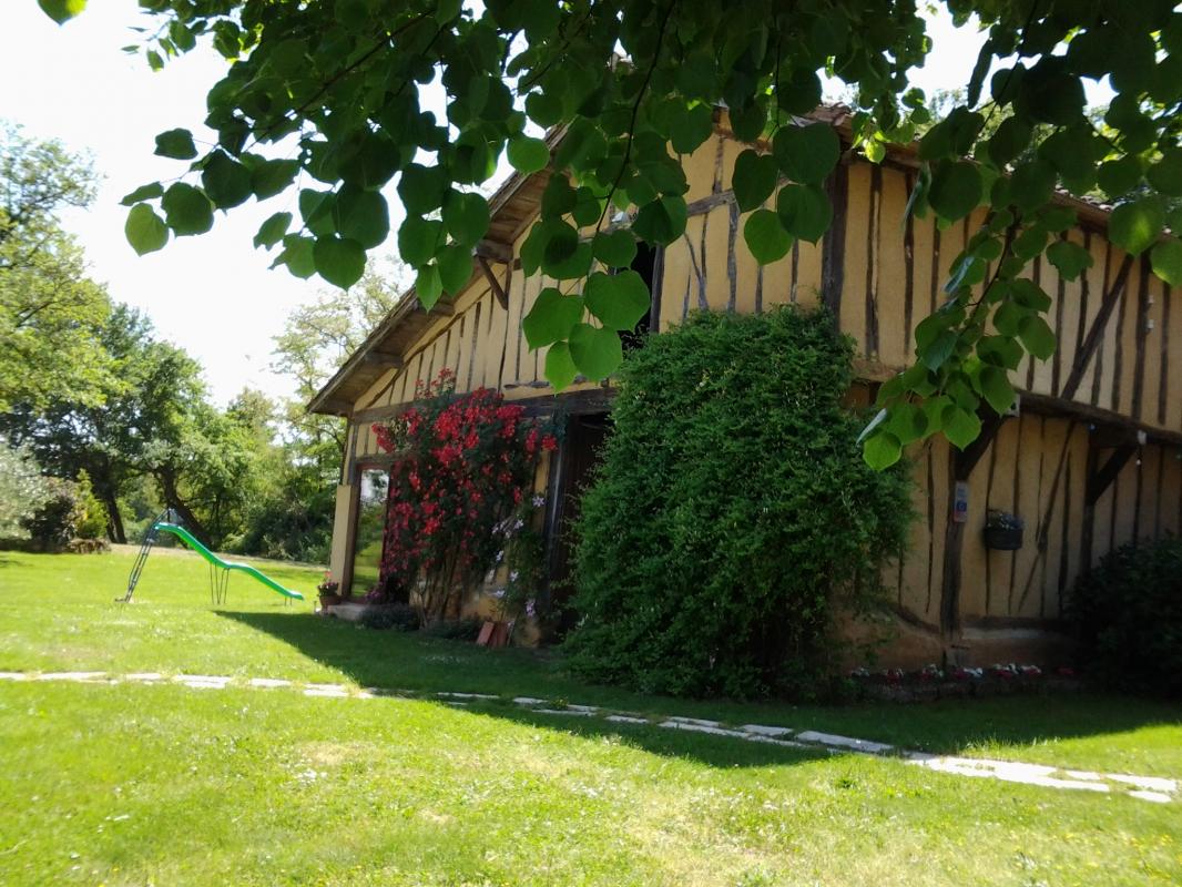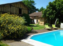Aménagé dans une ancienne ferme agricole isolée, à 100 mètres du premier voisin, ce gîte à colombages (145 m2- rdc, accessible à tous) et ses annexes, donnent sur un terrain arboré de chênes centenaires avec une vue sur les coteaux gersois. A votre disposition, une piscine privée sécurisée par une alarme (+ clôture si location avec enfants) (9,5×4,2 – prof:0,90/2.00m), un sauna pour 2 pers et un SPA pour 6 personnes (avec supplément) dans l’ancien chai aménagé, un lac sur la propriété (300m) . Terrasse couverte. Abri voiture (appentis). Tarifs WE. A 400m de la voie ferrée Nogaro/Sorbets équipée de vélo rails. Chemin de randonné à proximité. Sur place : Chambre insolite dans un tonneau (100? / nuit). Séjour/cuisine, cellier, 3 chambres dont une avec lavabo (1 lit 160, 1 lit 140, 1 lit 110, 1 lit 90), salle de bains (+douche), wc, Wifi. Dans le chai, jacuzzi (avec supplément), sauna, 2 appareils de fitness, douche à l’italienne,wc