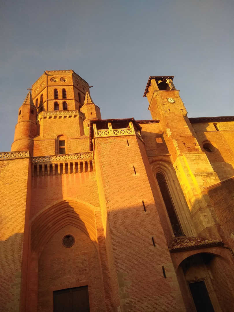 Gîte pour 2 personnes, mitoyen à la maison des propriétaires, vous pourrez flâner dans notre belle cité cathare aux maisons anciennes, visiter notre splendide cathédrale aux fresques colorées fraîchement restaurées, contempler son célèbre Jacquemart et écouter l’histoire de notre légendaire Dame Guiraude.