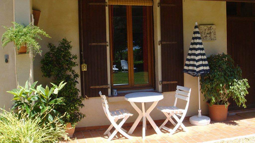 Environnement de Mas. Mitoyen dans ensemble bâti. En rez de chaussée, accès de plain pied, séjour-cuisine, salon avec canapé, 1 chambre, salle d’eau avec wc, 2 terrasses, salon de jardin, parking, lave-linge collectif, gare proche, autobus proche, chauffage électrique, chauffage inclus. Espace vert arboré. Couchages : 1 lit en 140. Une terrasse couverte. Ventilateur. ULM à 5kms. Portail automatique.