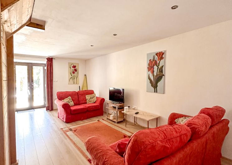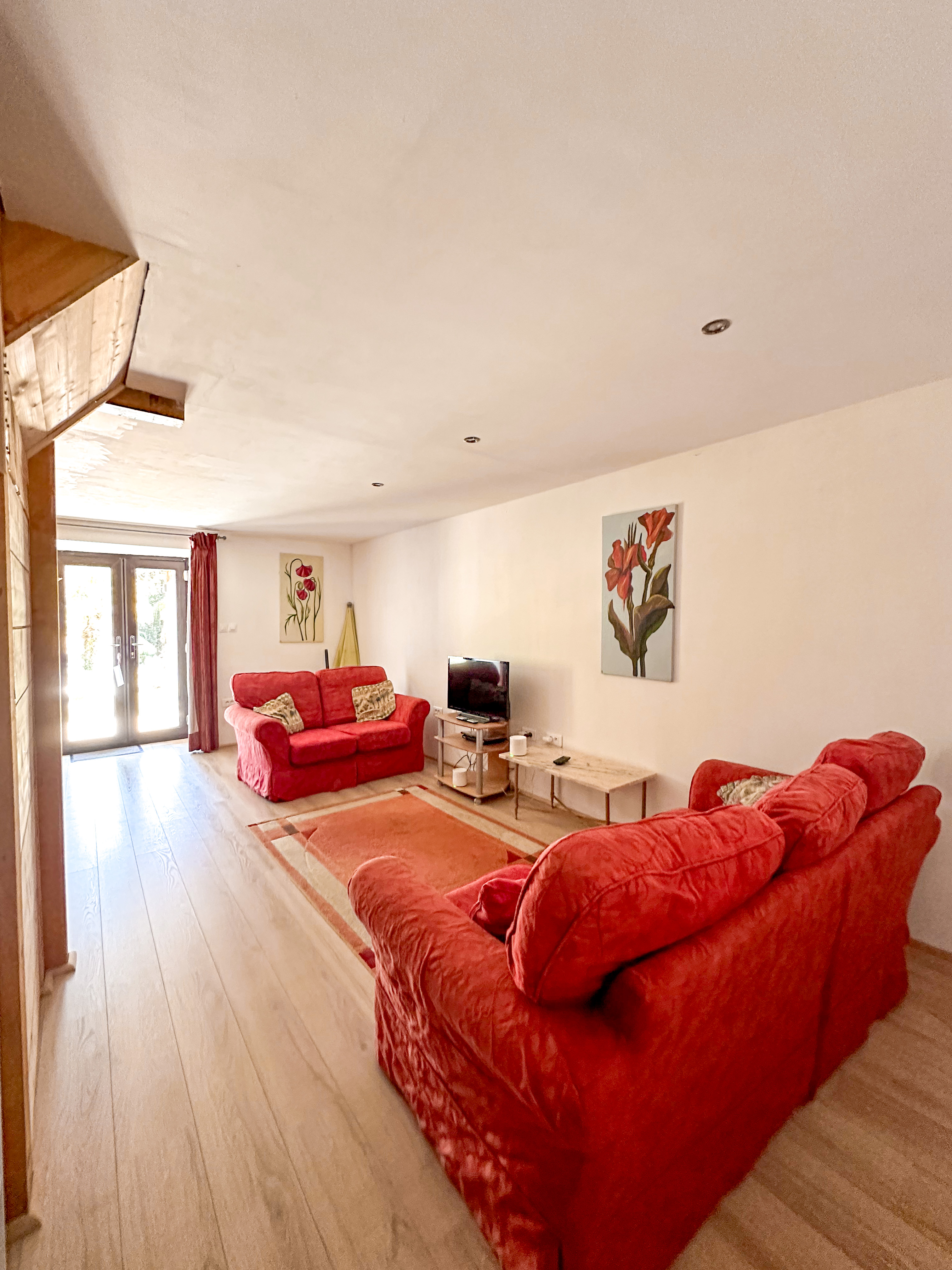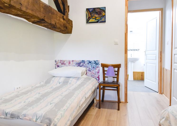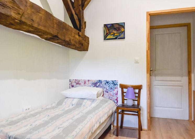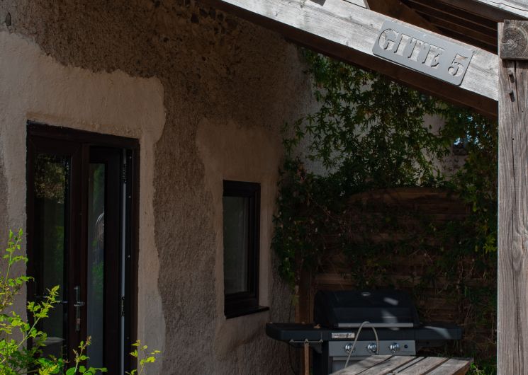 Le gîte 5, le pressoir Le gîte dispose de 3 chambres et peut accueillir 5 personnes (une chambre double, une chambre twin et une petite chambre simple), salle de douche, salon/salle à manger et cuisine entièrement équipée. Il dispose d’un jardin donnant sur la piscine et d’une terrasse couverte offrant beaucoup d’ombre en été. Il est entièrement isolé et dispose d’un radiateur dans chaque pièce, ce qui le rend très confortable en hiver. Il est idéal pour les vacances d’été comme d’hiver. Au total 90 mètres carrés (environ 1000 pieds carrés). .
