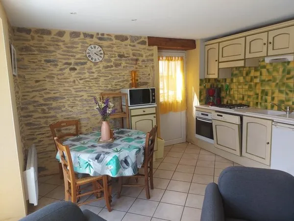 Gîte indépendant, sur 2 niveaux situé dans le centre du village à proximité de l’église. Coin cuisine équipé avec lave-vaisselle, four encastré, plaques de cuisson, micro-ondes … Partie séjour avec télévision et poêle.