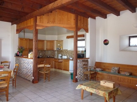 Ancienne école rénovée indépendante aux portes du Parc Naturel Régional de l’Aubrac. Au rez-de-chaussée : Salle de séjour, coin cuisine (réfrigérateur), lave vaisselle, lave-linge, WC. Au 1er étage : 1 chambre (1 lit 2 places), 1 chambre (1 lit 2 places), 1 chambre (2 lits 1 place), salle d’eau, WC.lit et chaise bébé, cheminée avec insert (bois non fourni), téléphone, cour fermée, garage, parking, salon de jardin, location de draps.