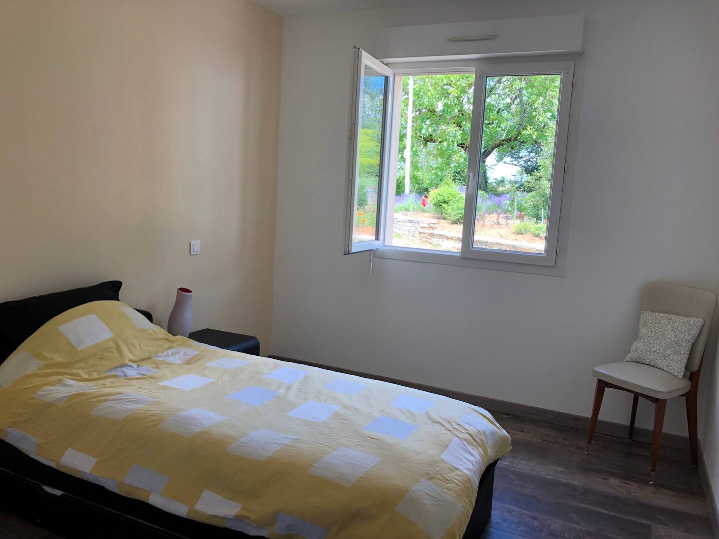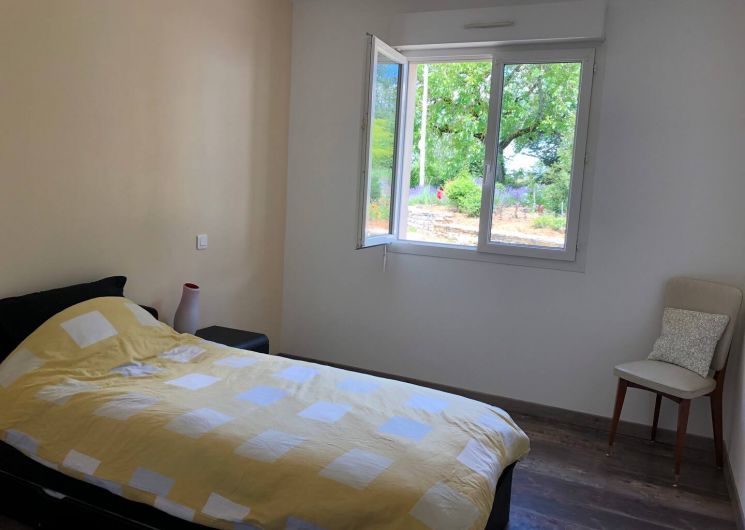 Gîte de plein pied avec chauffage au sol. Salle de séjour/cuisine équipée, 4 chambres : 3 lits 2 places et 2 lits 1 place, 2 wc, 2 salle d’eau, terrasse semi-couverte orientée plein sud avec barbecue, grand terrain avec vue non clôturé.