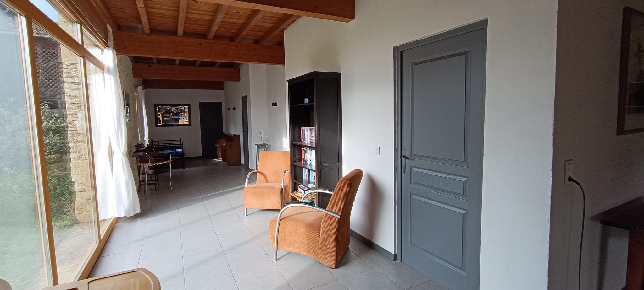 Longère indépendante alliant le moderne et l’ancien. Le gite se compose de : 2 chambres de 13m² avec une salle de douche et wc de 10m² entre les deux, d’une suite parentale de 20m² avec salle de douche et wc, d’un espace de vie de plus de 70m²