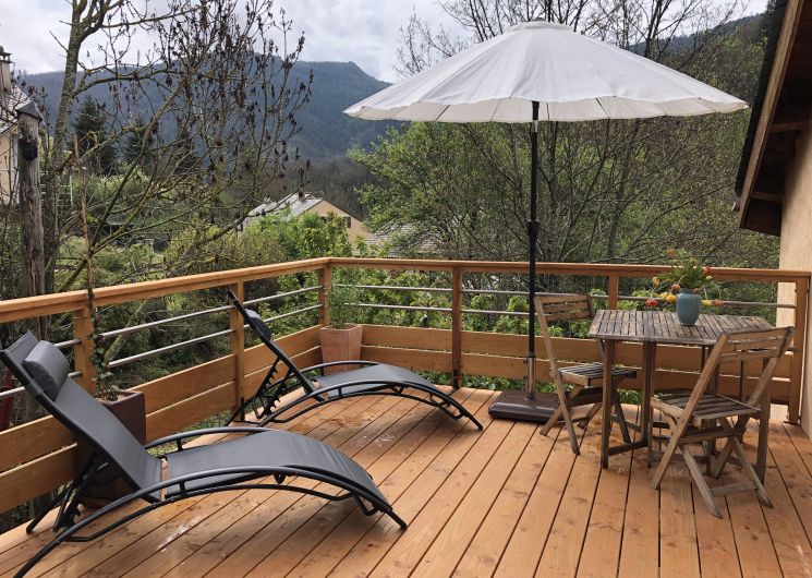 A 5 minutes de Florac et de tous les services, notre appartement « Champêtre » est à l’étage de notre maison individuelle, bien exposé et d’accès indépendant. Pour y accéder, un escalier extérieur donne sur une jolie terrasse en bois avec salon de jardin et des transats, idéale pour un petit déjeuner au soleil ou un barbecue à l’ombre le soir. Nous vous réservons un accueil chaleureux et savons vous conseiller avec passion sur les escapades incontournables du Parc national des Cévennes. Notre appartement comprend : Un coin séjour avec canapé et TV, un coin cuisine très bien équipé, une chambre avec un lit jumeau (en 180) et une salle de bain avec douche et WC. A l’extérieur, de plain pied avec le coin cuisine et séjour, une belle terrasse en bois et un salon de jardin. Lave linge commun avec nous dans le garage. La rivière est à seulement 100m.