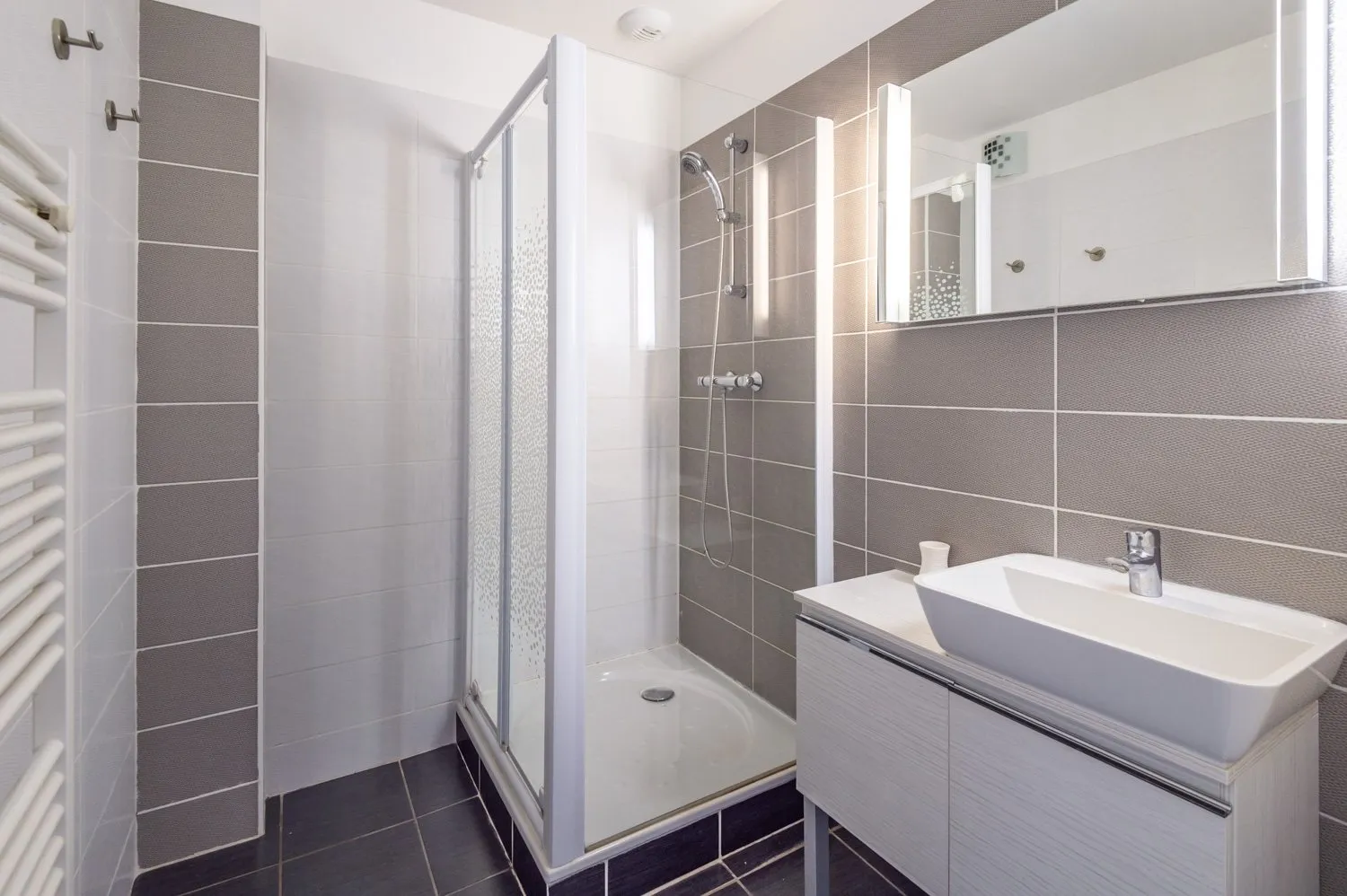 1er étage : 1 chambre (13,8 m²) : 3 lits en 90. 1 chambre (11 m²) : 1 lit 160. 1 chambre (11,5 m²) : 1 lit 160. 1 chambre (12,3 m²) : 1 lit 160. Salle deau : douche. Salle de bain : baignoire. WC indépendant.