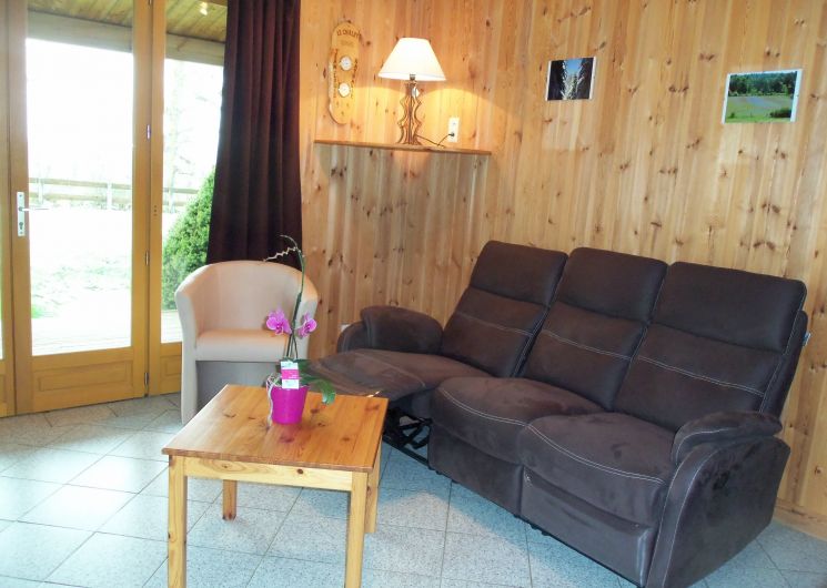 Maison en bois située en sortie du village, sur un terrain clos de 500 m² avec vue sur la Margeride comprenant : cuisine équipée, séjour avec cheminée insert , deux chambre, Teerrasse, salon de jardin et parking privé. Séjour « Travail Nomade » avec mise à disposition sur demande d’un espace de travail et d’équipements de bureau. Débit internet « Réception 20.27Mb/s Envoi 26.61Mb/s).