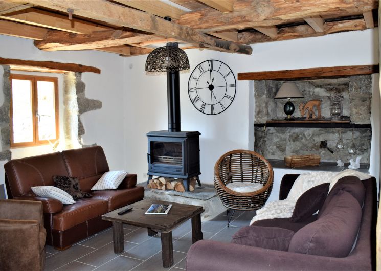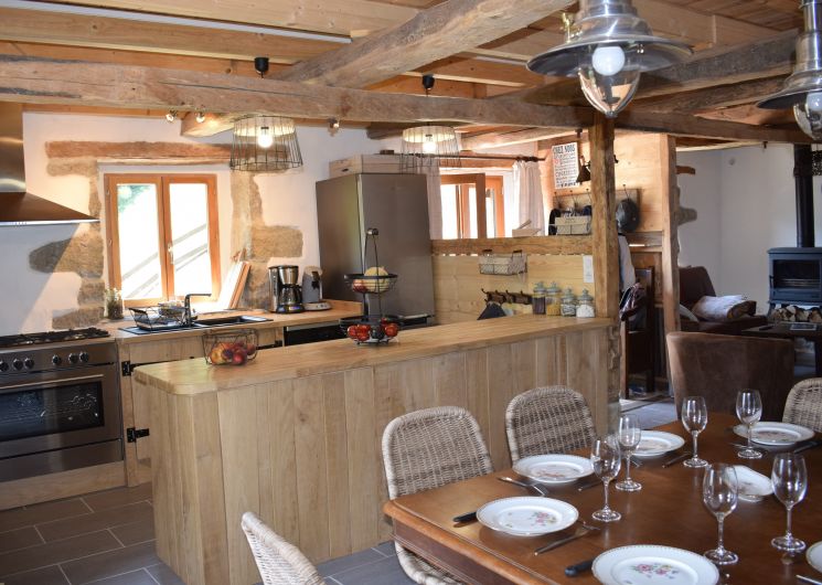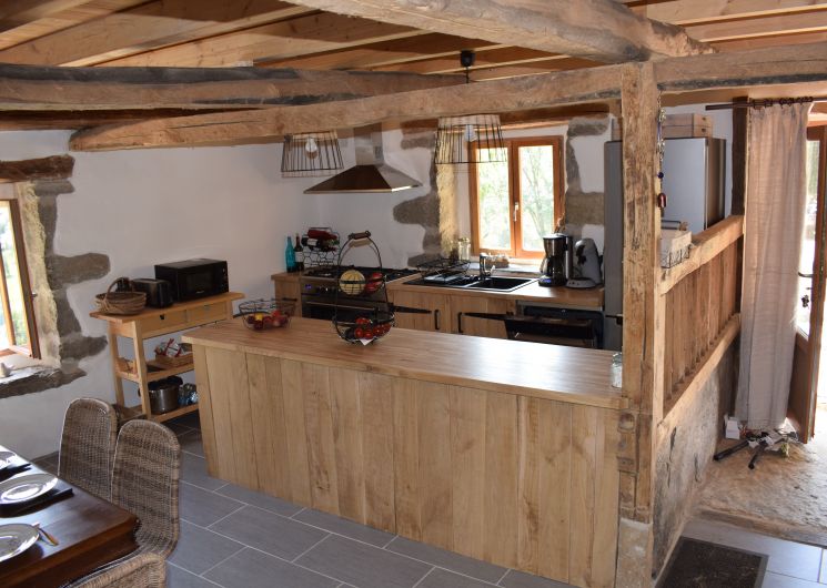 La grange d’une capacité de 6 personnes comprenant : Au rez-de-chaussée : une cuisine toute équipée ouverte sur la salle à manger, le salon avec poêle à bois, un WC, une salle de bain douche avec lave linge et sèche linge. A l’étage : une chambre (lit 140), une chambre ( 2 lits de 90 et lit 140), une petite alcôve avec lit 90, et une salle de bain (baignoire et WC). Lit bébé et chaise haute disponible. Vous bénéficierez d’un grand jardin clos fleuri avec ses terrasses munies de tables et fauteuils relaxants, barbecue et de l’accès au torrent.