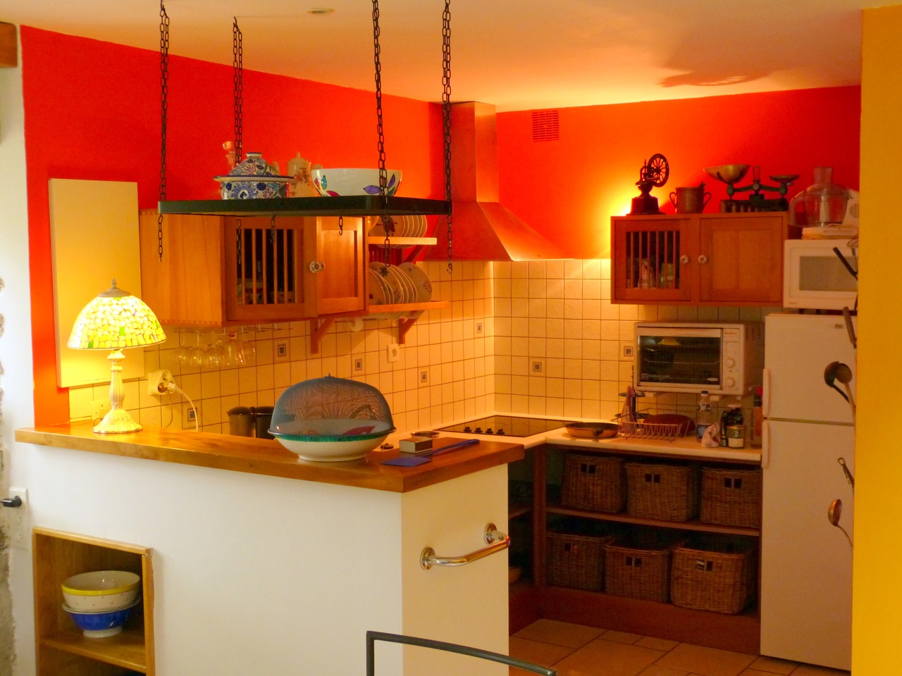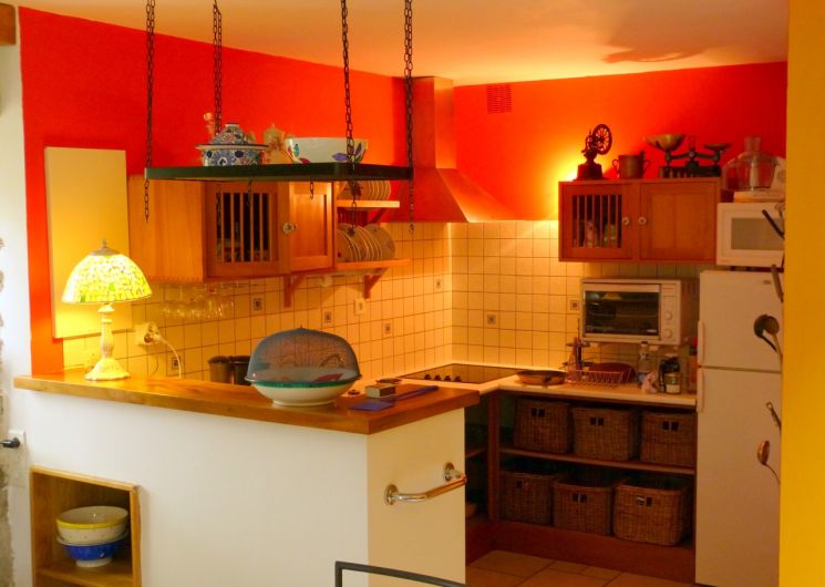 Cuisine américaine Séjour avec cheminée et bibliothèque. chambre cathédrale avec un lit de 160 chambre cathédrale avec deux lit de 90 et des matelas d’appoints Machines pour le linge et la vaisselle Deux salles de bain (douche et baignoire) Barbecue et meubles de jardin Accès aisé l’été, parking 4 terrasses avec ombrage naturel