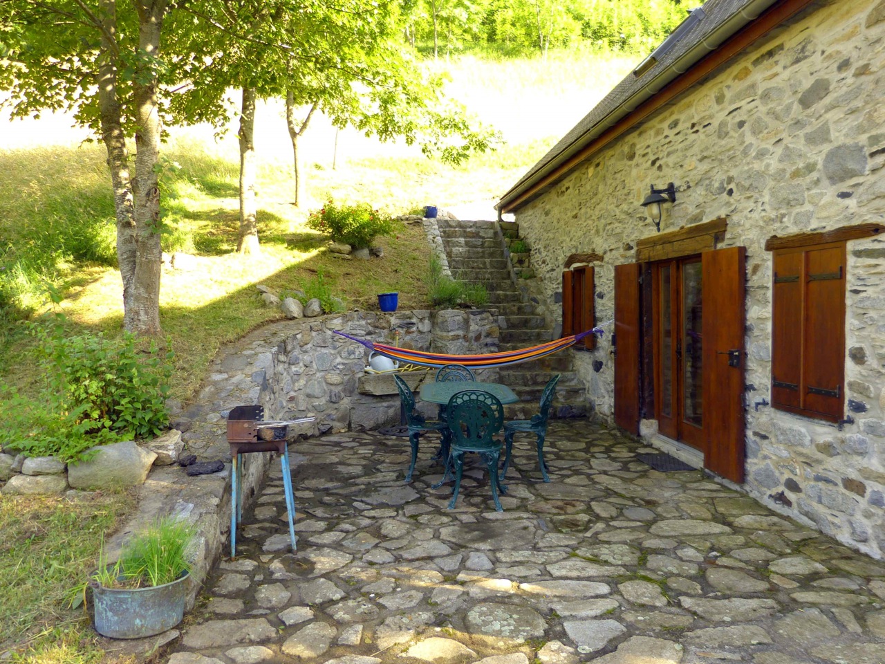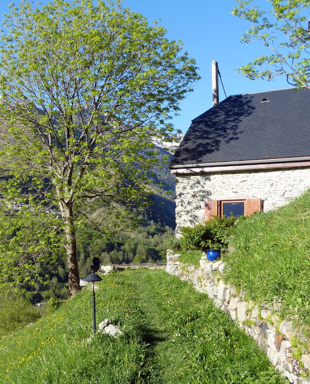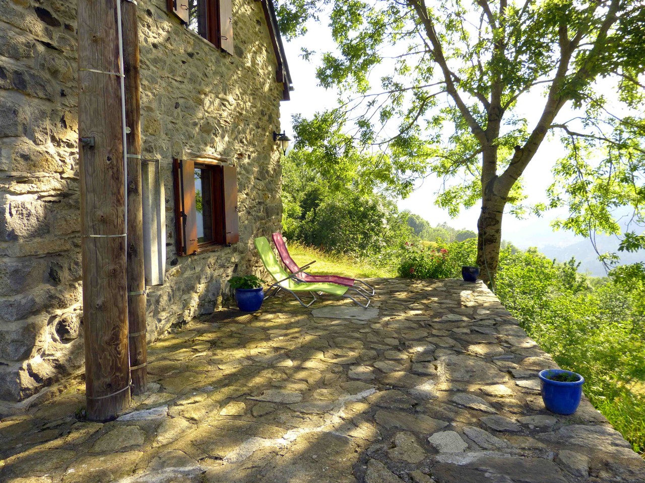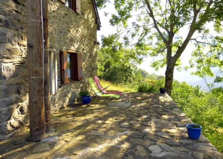 Cette luxueuse bergerie pour 4 (voire 5) personnes est extrêmement lumineuse et joliment décorée. Entourée de toute part, de terrasses fleuries, elle permet de profiter de l’ombre ou du soleil et de nombreux point de vue. Le parc d’un hectare comprend deux cascades, un bois , un petit pont … Une route privative aisément carrossable (en été) y donne accès. A partir de la maison, sans utiliser la voiture, de très nombreuses balades. .