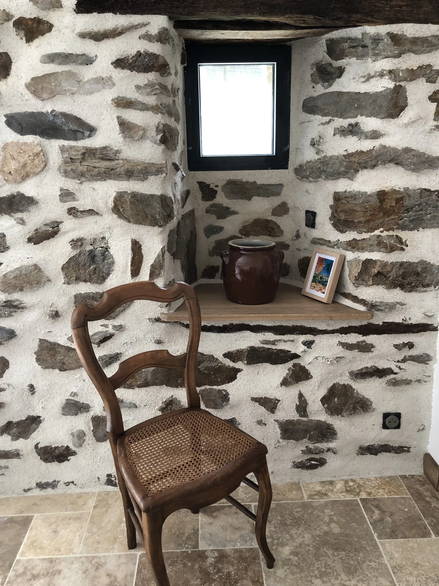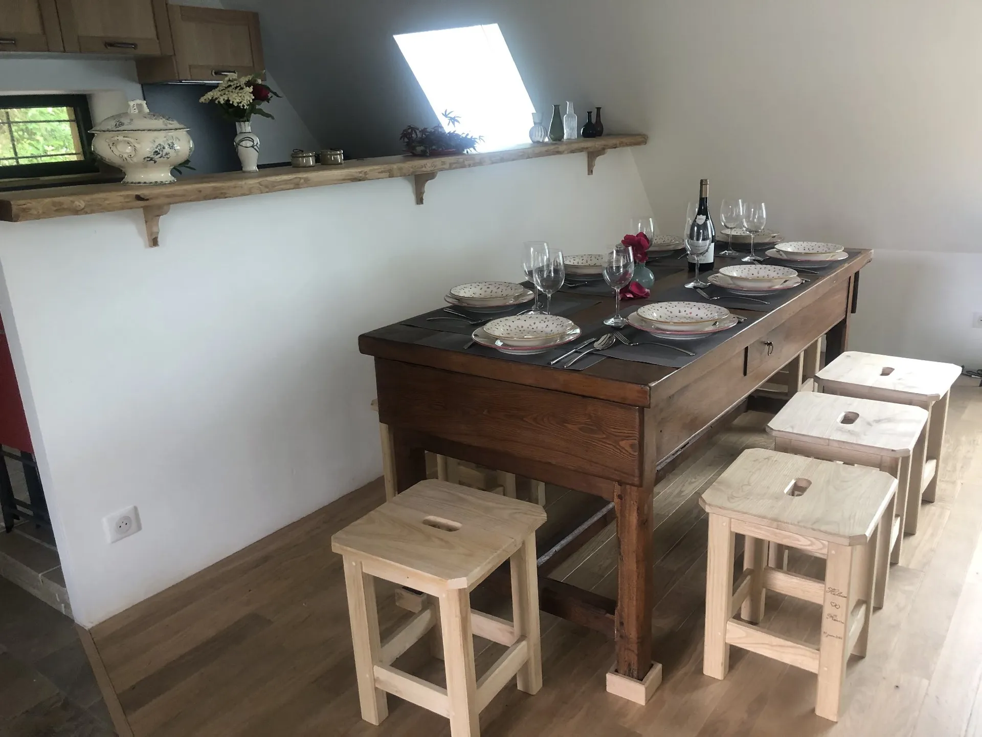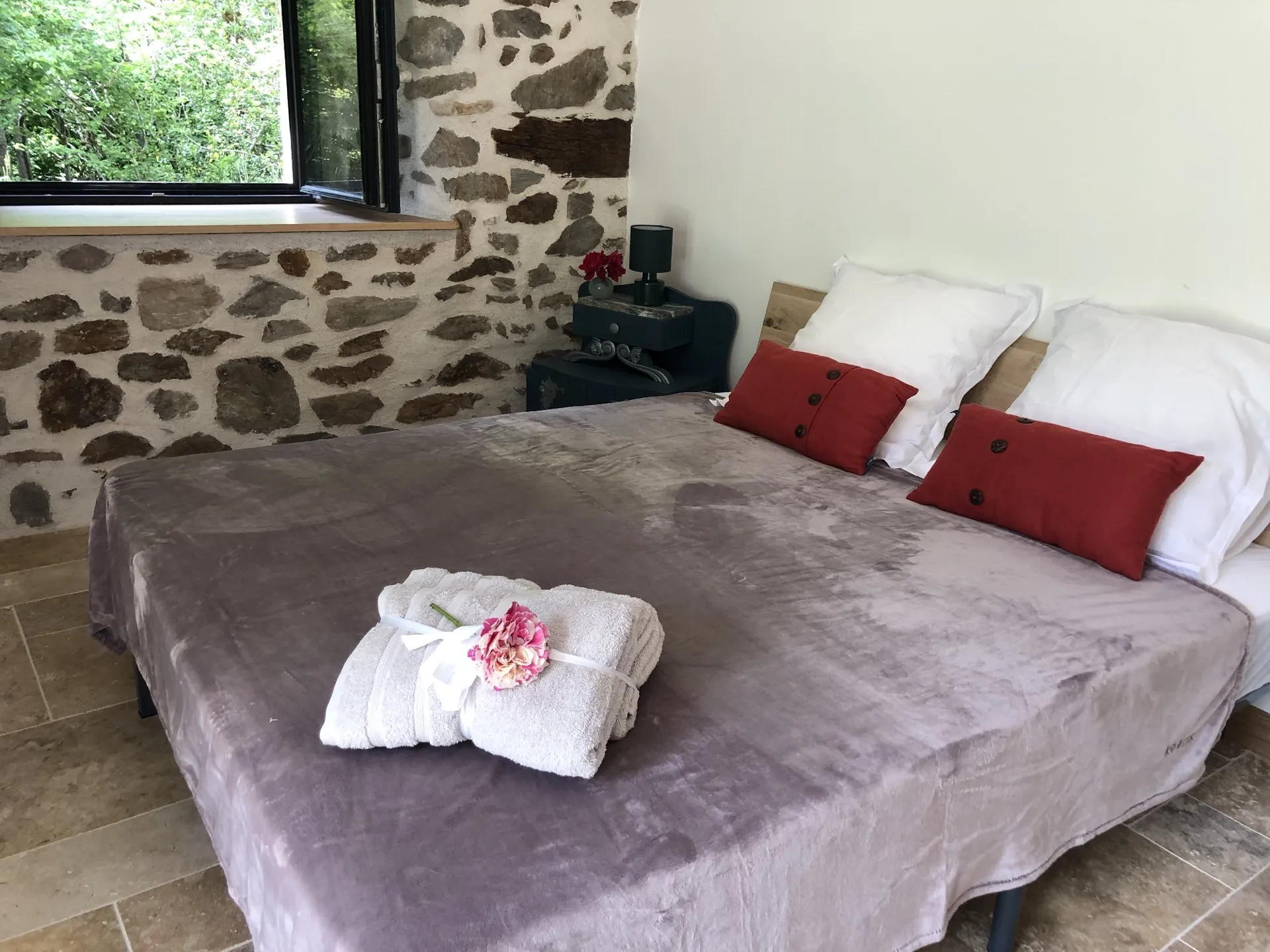 L’endroit est douillet, coloré et décoré avec goût. A l’entrée une petite terrasse entourée d’un muret en pierre de schiste vous offre une vue plongeante sur la rivière pour un petit déjeuner bucolique et gourmand. En entrant on découvre le garde-corps fait d’une enclume en fer d’un autre siècle et de châtaignier massif.
