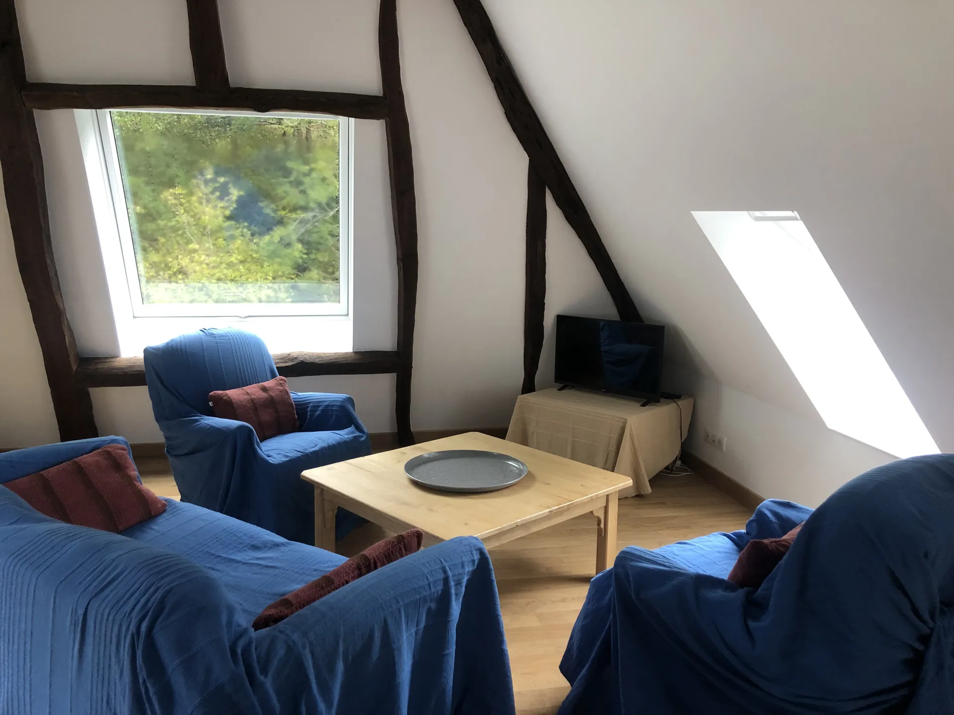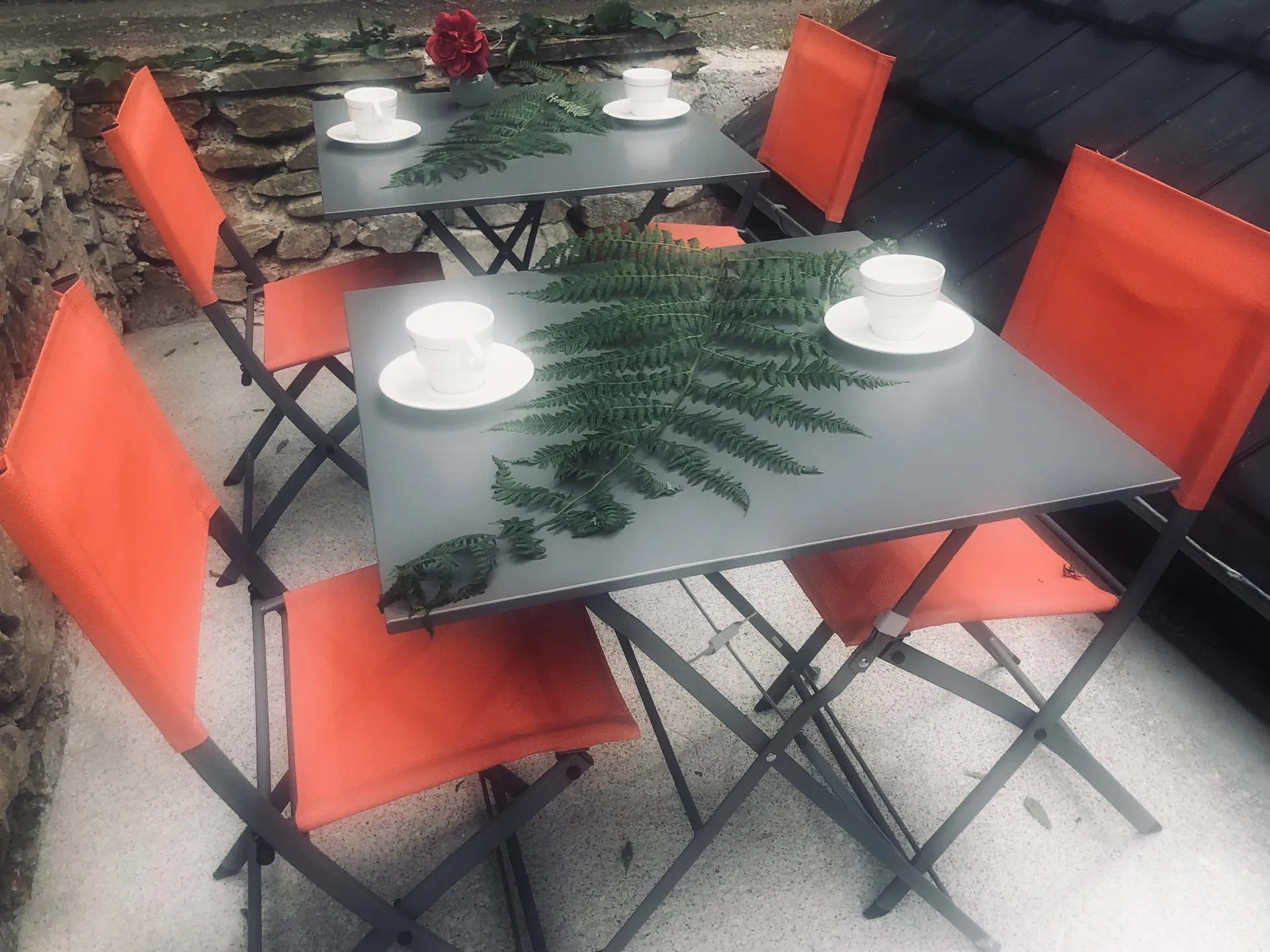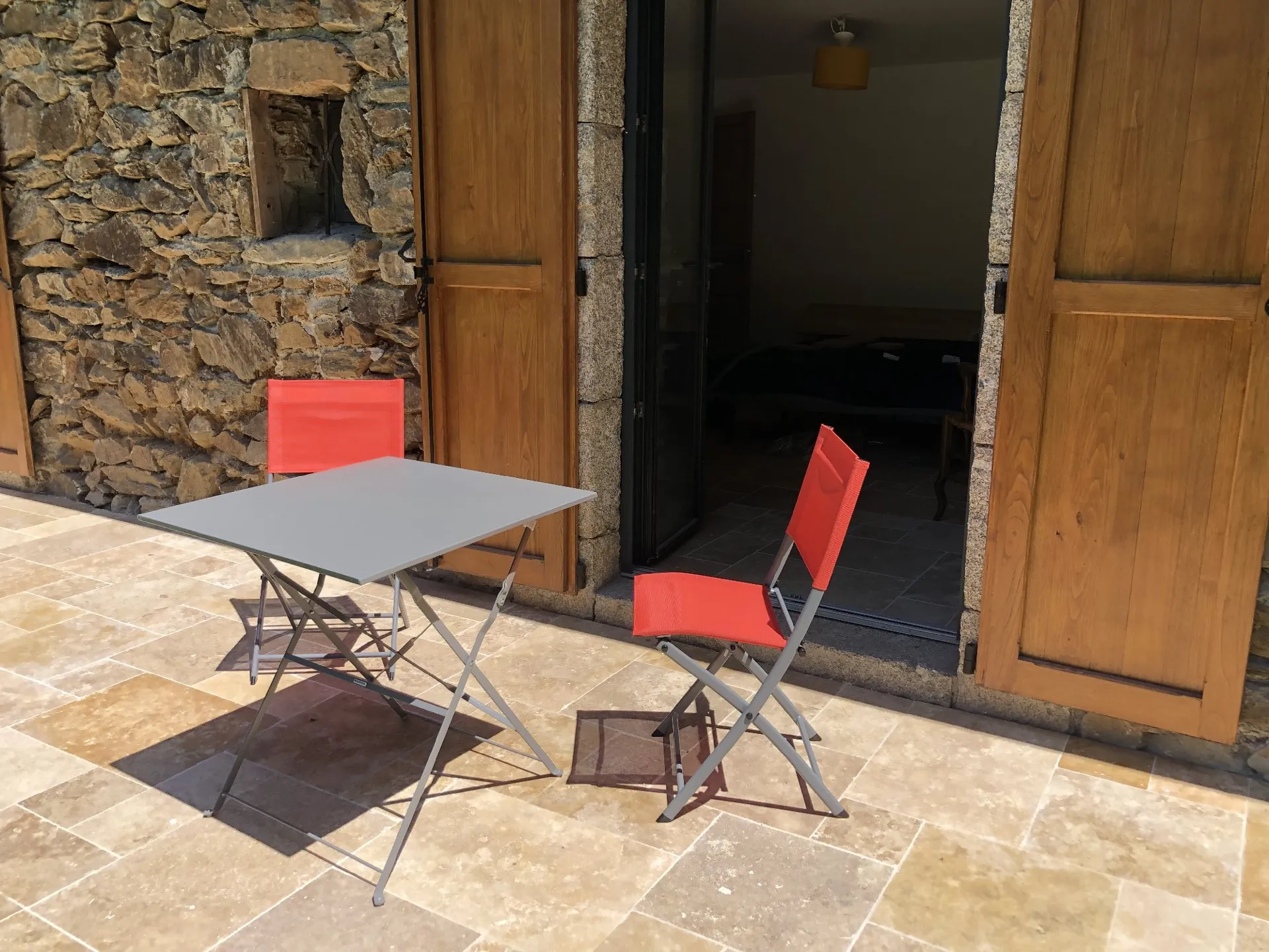 L’endroit est douillet, coloré et décoré avec goût. A l’entrée une petite terrasse entourée d’un muret en pierre de schiste vous offre une vue plongeante sur la rivière pour un petit déjeuner bucolique et gourmand. En entrant on découvre le garde-corps fait d’une enclume en fer d’un autre siècle et de châtaignier massif.