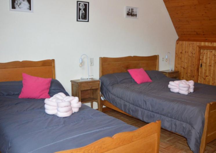Gîte de 120 m² (pour 5 personnes) comprenant : Rez-de-chaussée, une cuisine équipée ouverte sur un séjour/salon avec poêle à bois et une salle d’eau (douche) avec WC. À l’étage, 3 chambres (3 lits en 140 et 1 lit en 90), un WC indépendant. La location bénéficie d’un terrain clos, balconnet, salon de jardin. Sur demande équipement bébé (lit, chaise haute). À savoir : équipements voiture à prévoir l’hiver et caution si animal de compagnie (2 maximum).
