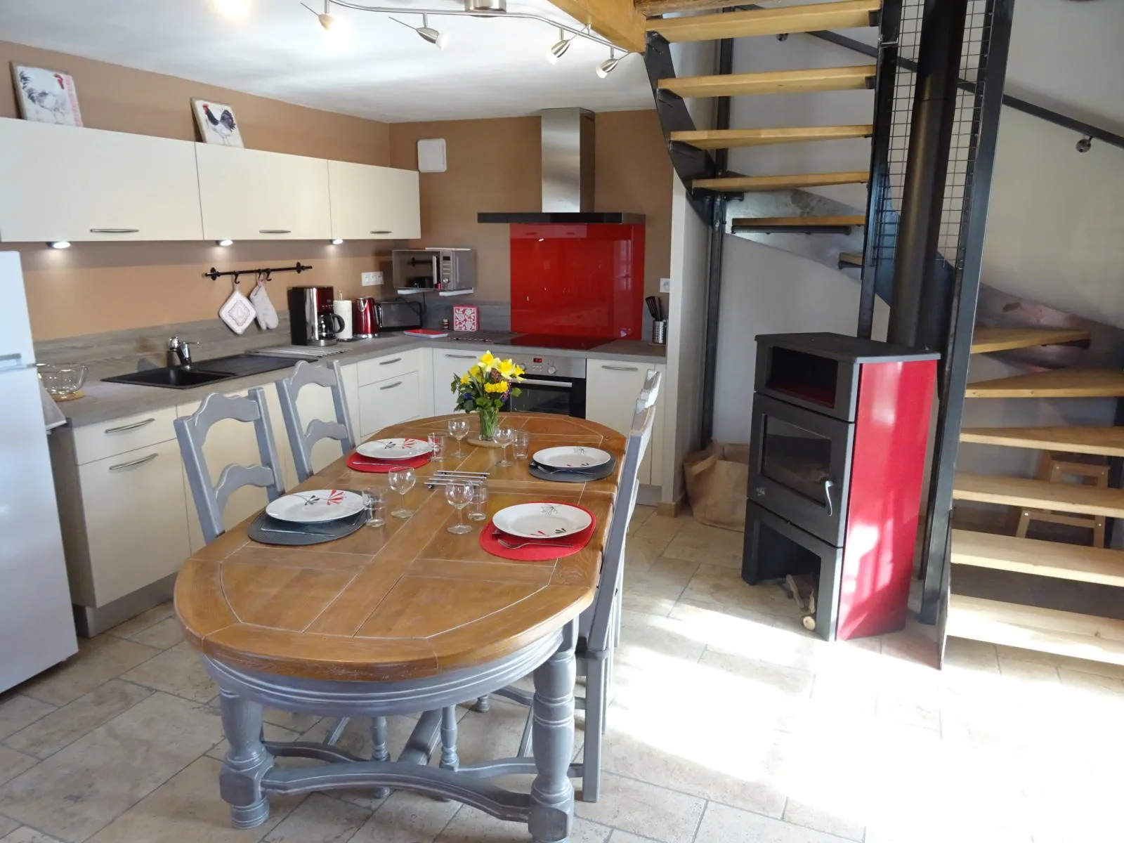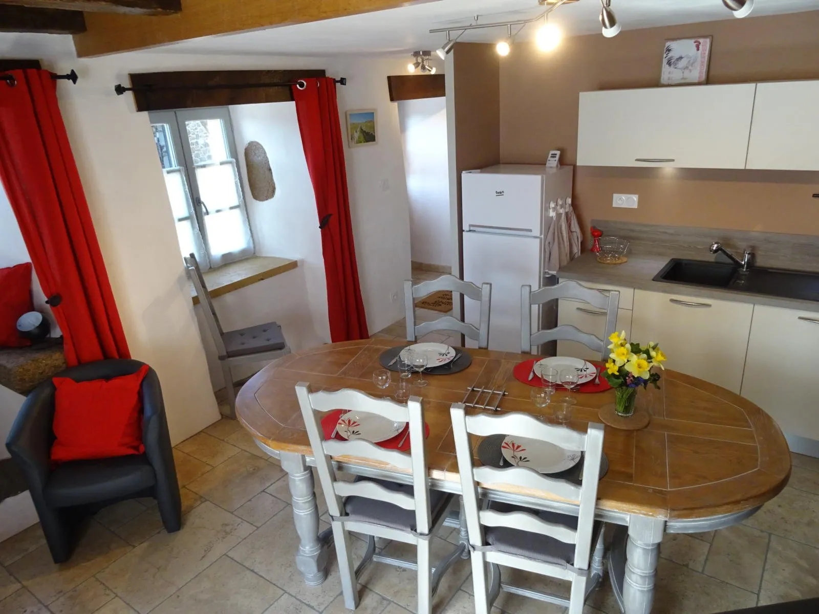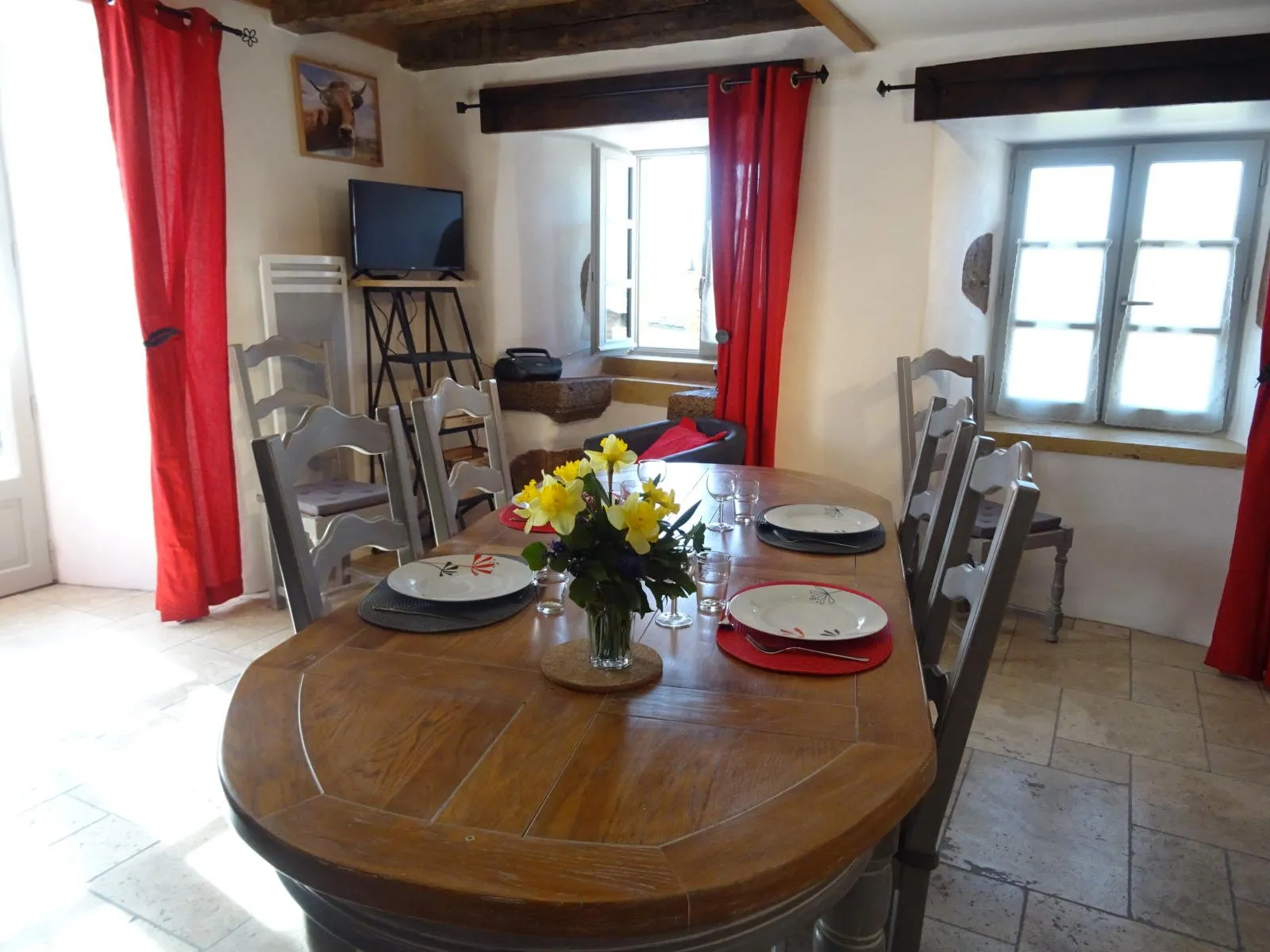 Gîte indépendant, sur 3 niveaux, dans un hameau. 2 chambres (1 lit 160, 2 lits 90), salle d’eau privée à chaque chambre, coin-cuisine(lave-vaisselle)/séjour (fauteuil, télévision, poêle à bois), salon (canapé, fauteuil, télévision), cellier (lave-linge, sèche-linge), chauffage complet électrique, terrasse privée (15m²), salon de jardin, barbecue, parking privé, draps fournis, location linge de table et de toilette, taxe de séjour.