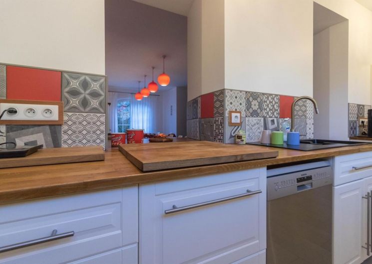 – Au rez-de-chaussée : entrée sur le salon, salle à manger ouverte sur la cuisine, buanderie, WC.