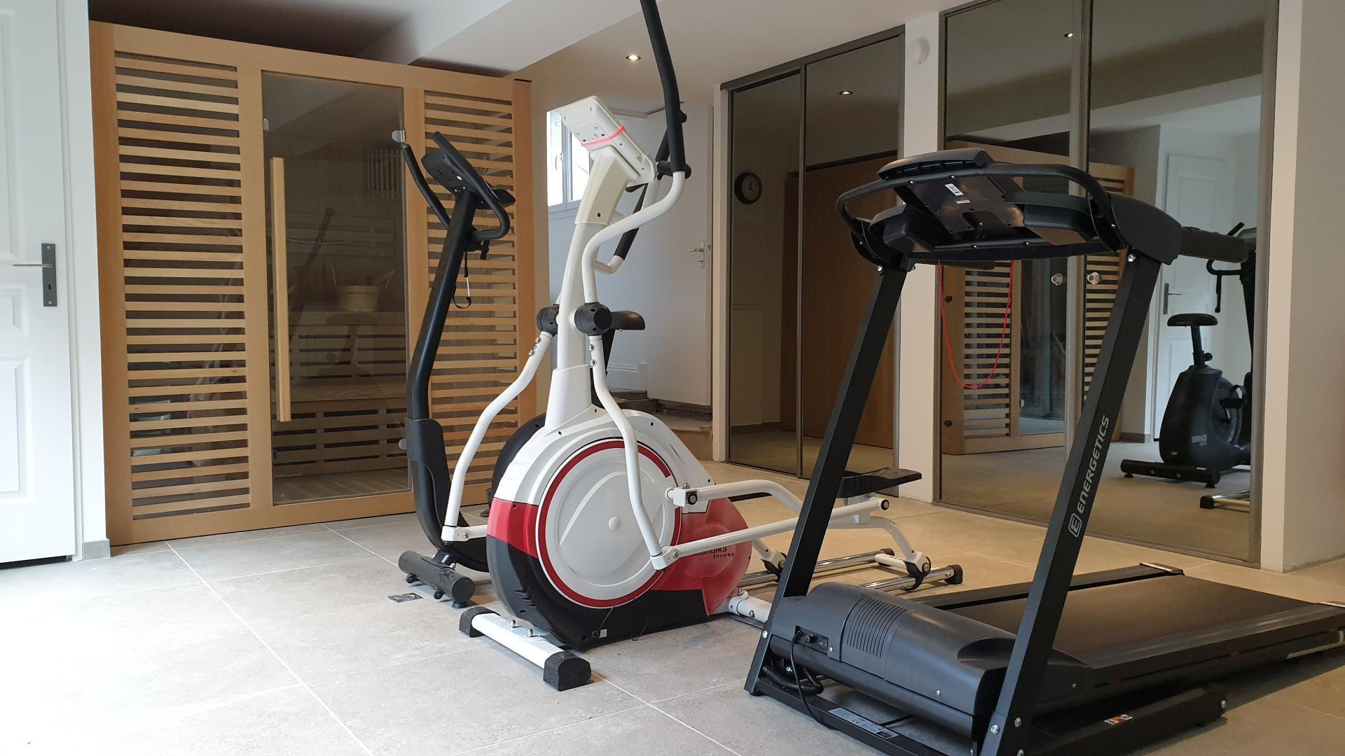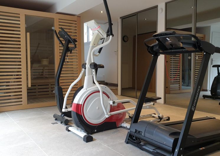 – Espace bien-être climatisé en rez-de-chaussée avec sauna & salle de fitness (vélo, vélo elliptique et tapis de marche) entièrement réservé au gîte.