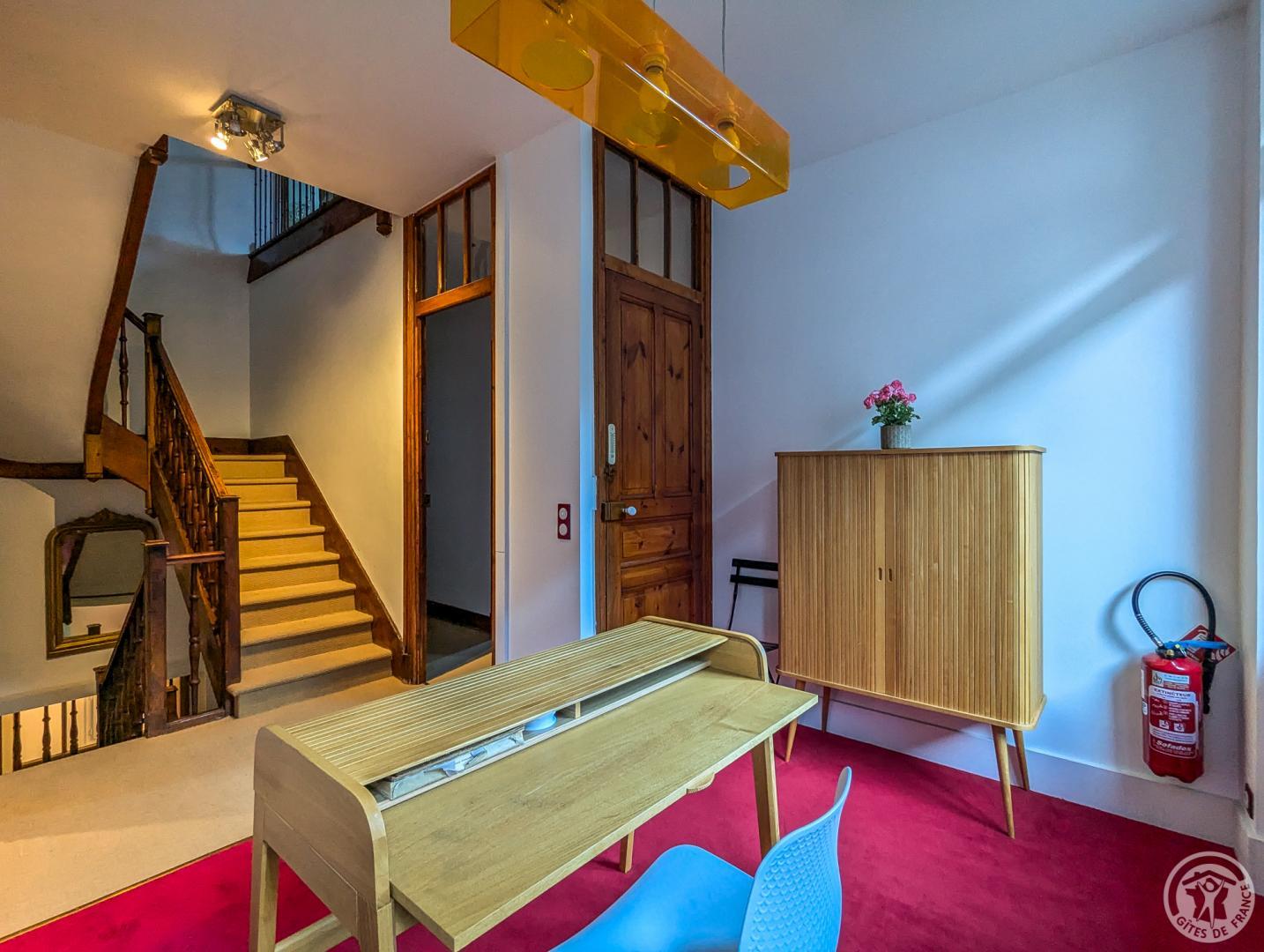 TELETRAVAIL : espace bureau dédié avec bureau, possibilité de lampe, prise électrique à proximité pour le branchement d’un ordinateur portable, rallonge et multiprise à disposition. Connexion internet haut-débit (wifi). Câble RJ45 dans une autre pièce. Couverture téléphonique 4G (opérateur : Orange). Téléphone sans fil.