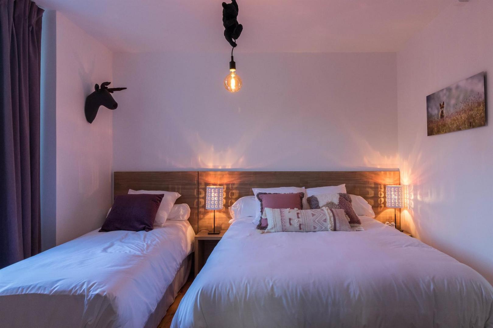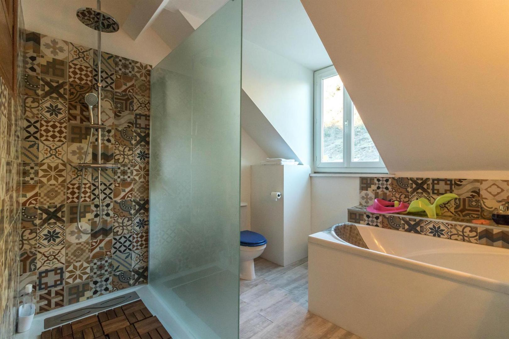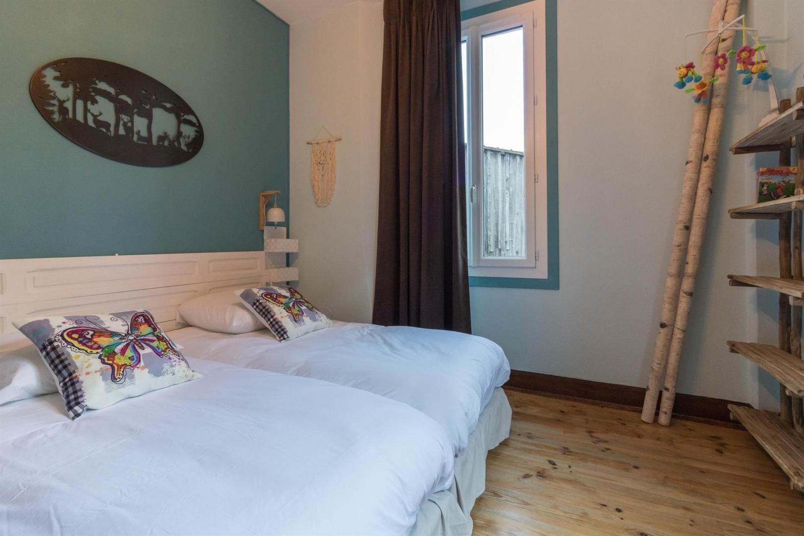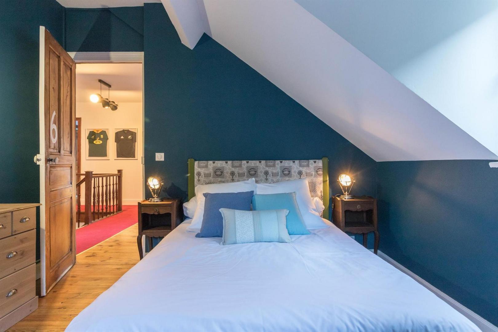 – Au deuxième étage, sous combles : espace détente/jeux en mezzanine avec babyfoot et flipper, 3 chambres (3 lits 1 personnes en 80cm dont 2 jumelables avec salle d’eau/WC privative) (1 lit 2 personnes en 140cm avec salle de bains/WC + douche privative) (1 lit 2 personnes en 160cm avec salle d’eau/WC).