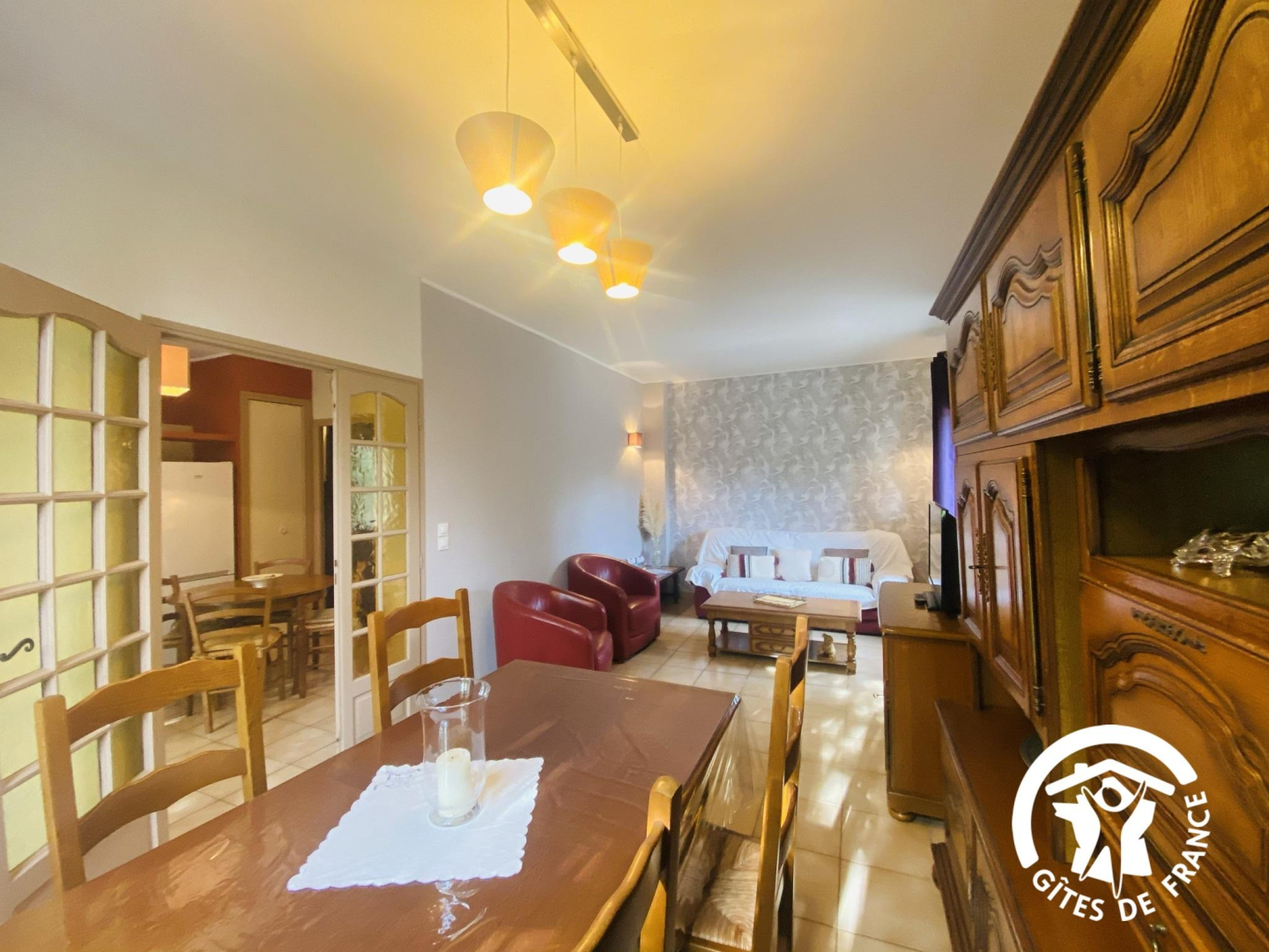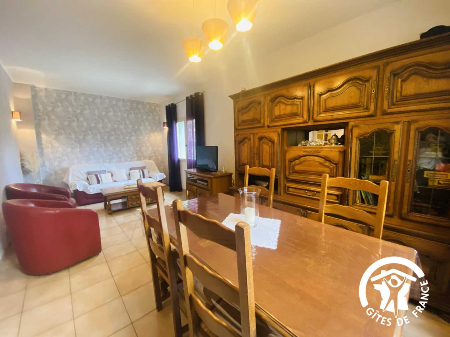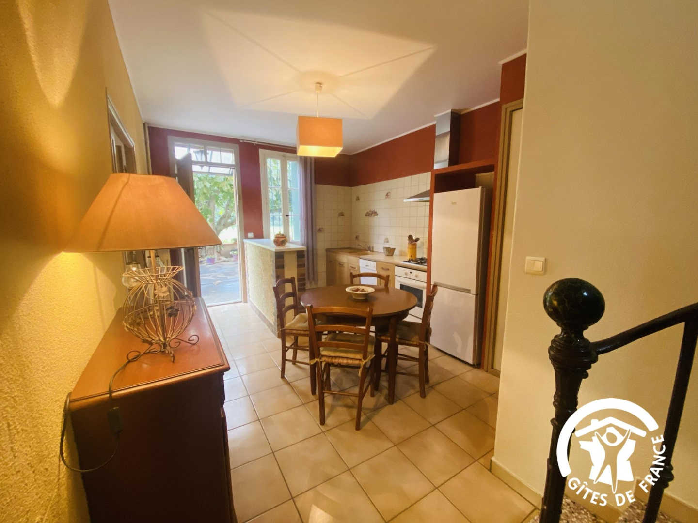 Bienvenue à Elne où vous pourrez explorer la richesse historique de la ville, avec sa cathédrale Saint-Jean-Baptiste, ses ruelles pittoresques, et son musée d’Art et d’Histoire. Les amateurs de nature apprécieront la proximité de la réserve naturelle de l’Illibéris et des montagnes de la Côte Vermeille. Ce gîte avec une entrée indépendante est situé sur une ancienne exploitation agricole, mitoyen à la résidence principale des propriétaires, avec cour commune. Vous profiterez d’une vue imprenable sur le Canigou depuis le grand terrain arboré. Rez-de-Chaussée : – Cuisine indépendante ouverte sur terrasse ombragée – Séjour/salle à manger – Buanderie – WC indépendant Premier étage : – Chambre 1 : 1 lit 140×190 – Chambre 2 : 2 lits 90×190 rapprochables – Chambre 3 : 1 lit 90×190 (possibilité d’un couchage supplémentaire) – Salle d’eau avec WC Grand terrain arboré non clos, verdure environnante, vue sur les arbres fruitiers et le Canigou. Parking dans propriété.