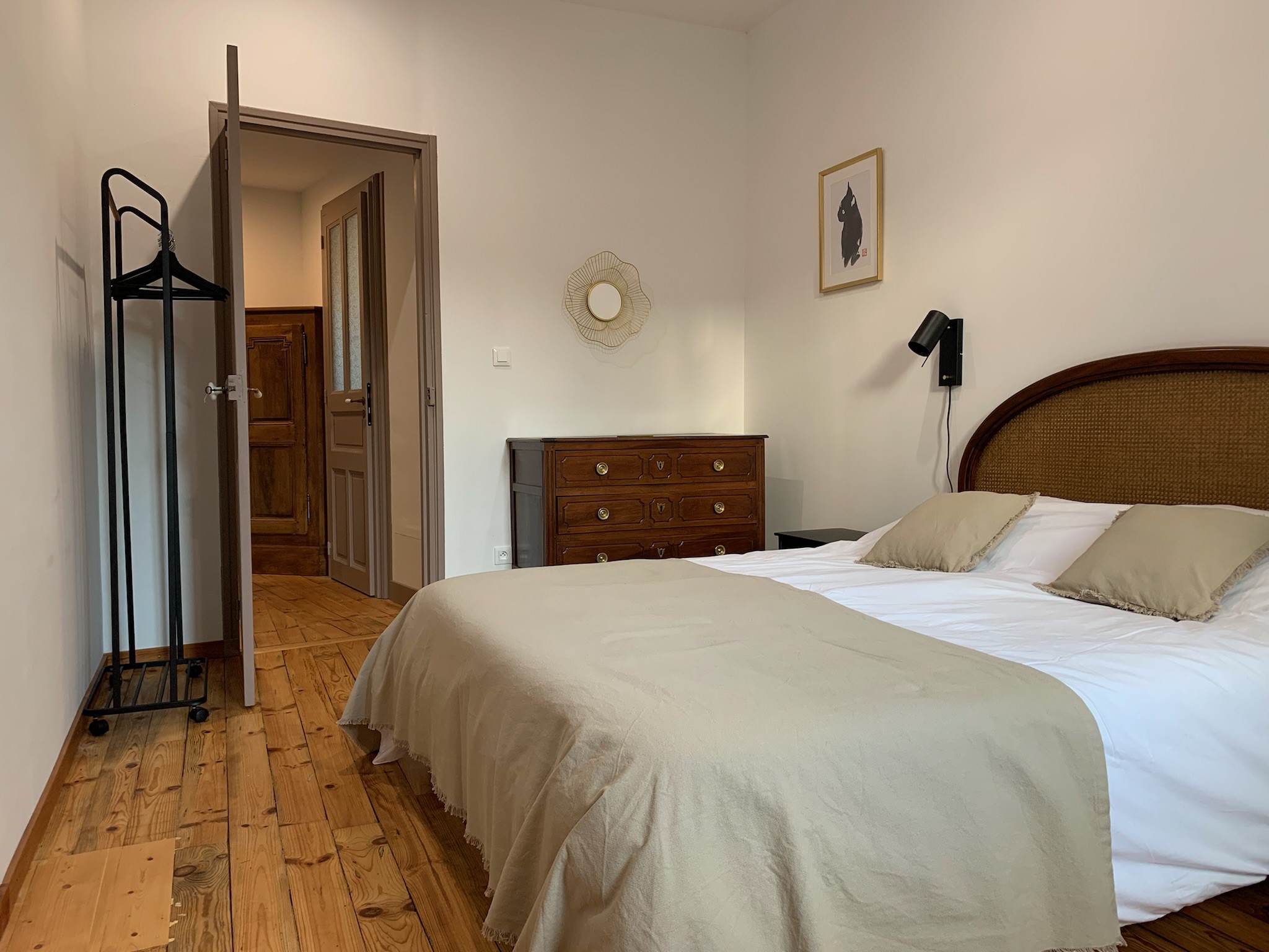 Villa T3 entièrement rénovée au fond d’un jardin ombragé et calme, logement spacieux pour 4 personnes. Chambres et salle d’eau à l’étage. TV et internet Freebox. Linge inclus.Terrasse privative, accès barbecue, 1 place de parking. A 500m du centre ville et 900m des thermes.