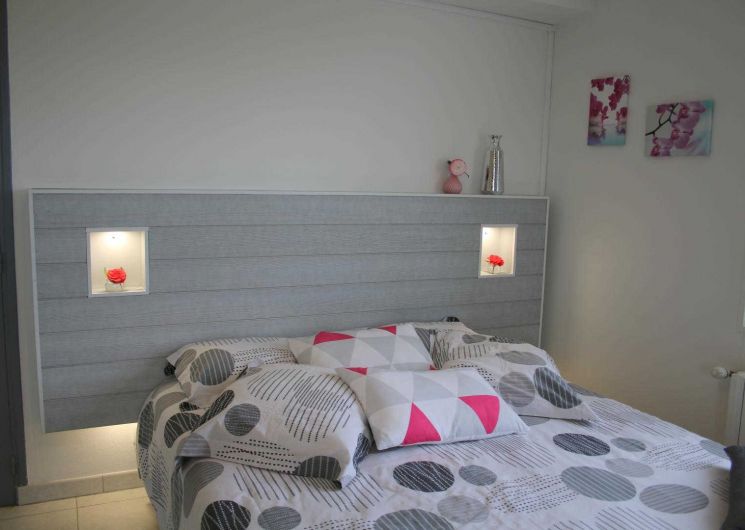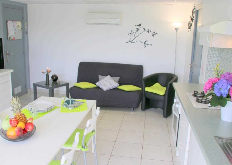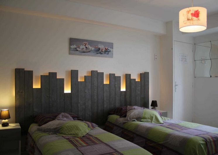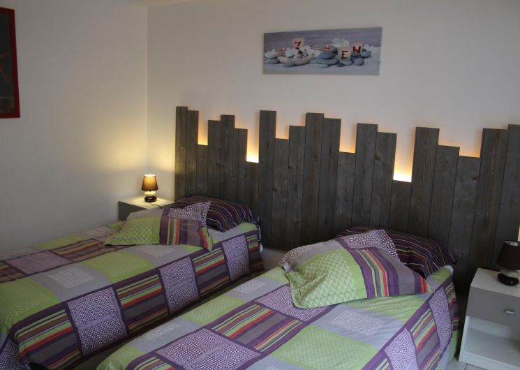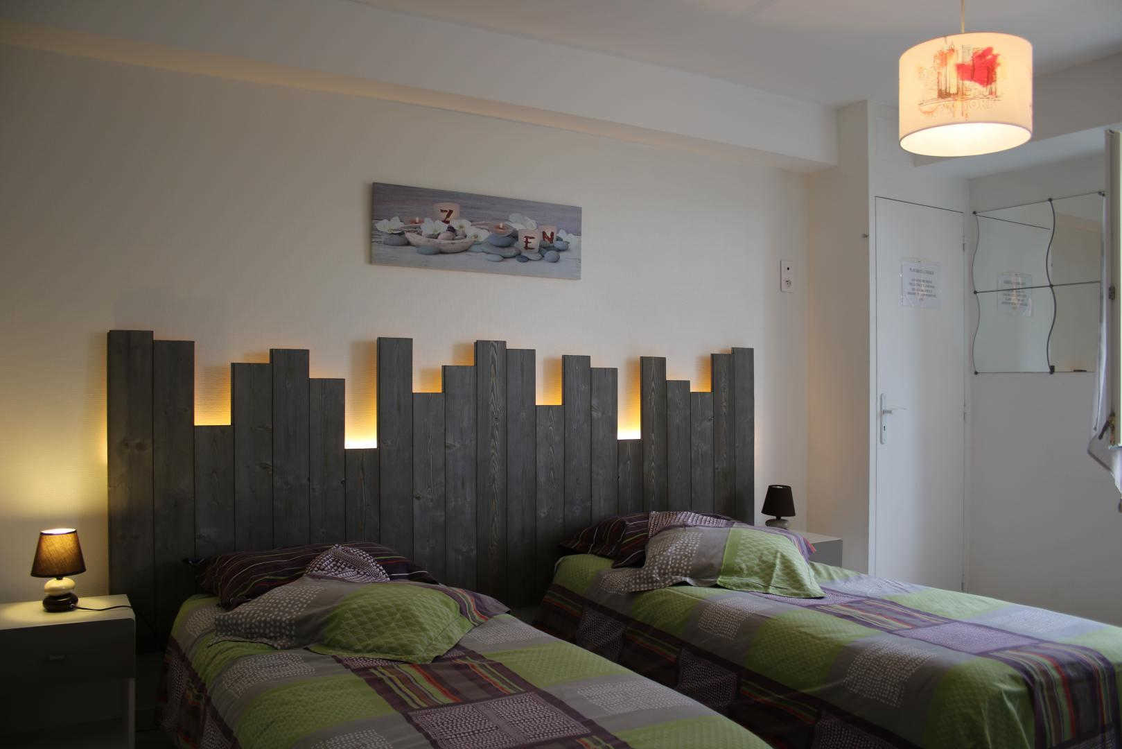 Aménagement de plain pied : entrée sur le séjour/cuisine, 2 chambres (2 lits 1 personne en 90 jumelables en 180) (2 lits en 80 jumelables en 160), salle d’eau/WC, WC indépendant.