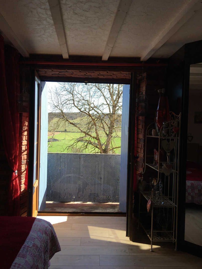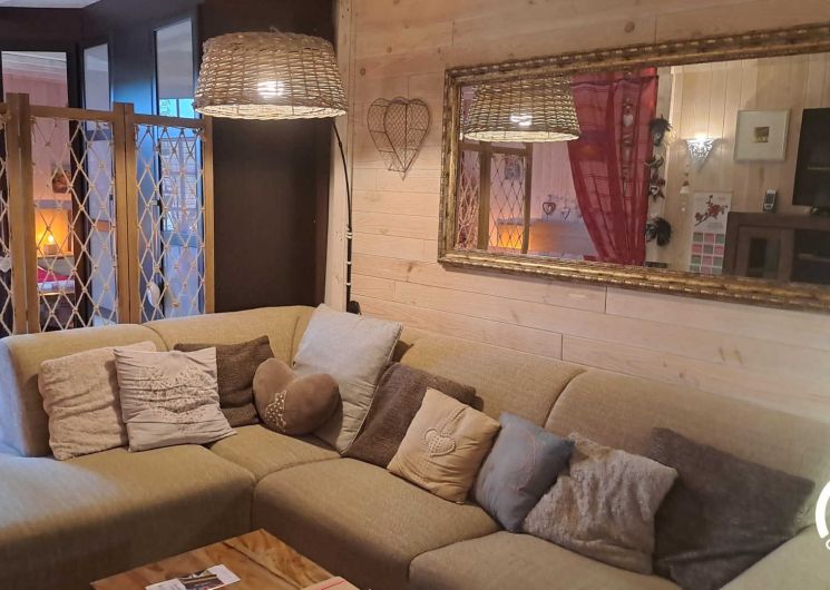 Suit ensuite l’espace salon avec son canapé et la télévision par internet, et dans le prolongement, la partie couchage équipée d’un lit en 140x190cm et son armoire dressing. Une porte fenêtre donnant sur un balcon offre une magnifique vue sur la vallée de Laurausse.