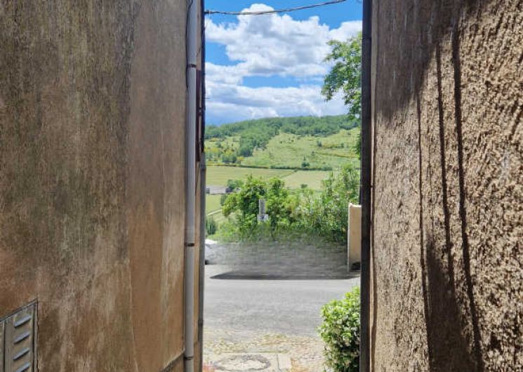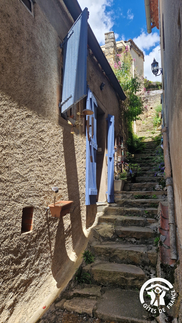 L’accès au gîte se fait par une ruelle étroite après quelques marches pas très droites, mais pas d’inquiétude, c’est typique des rues de Cordes-sur-Ciel !