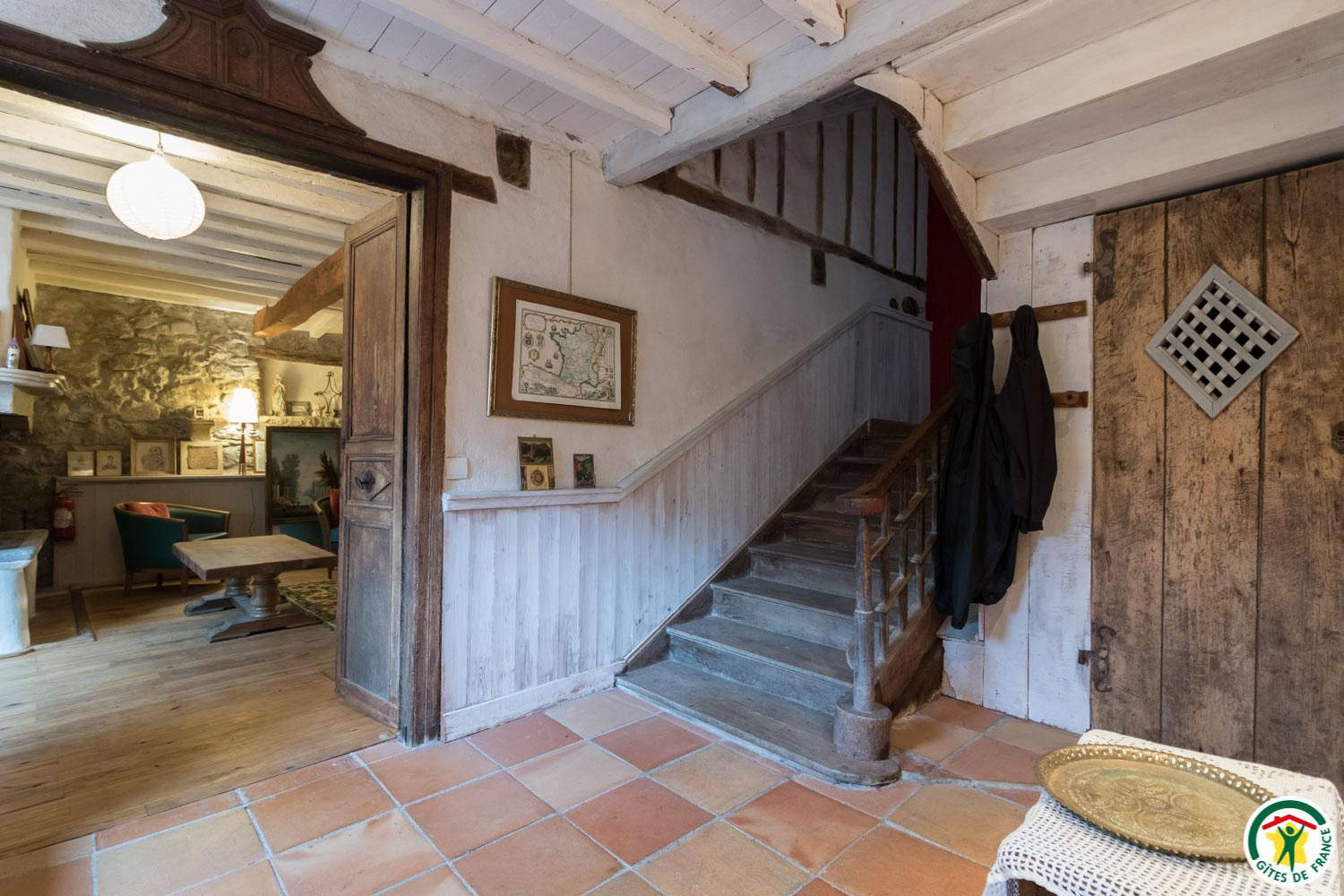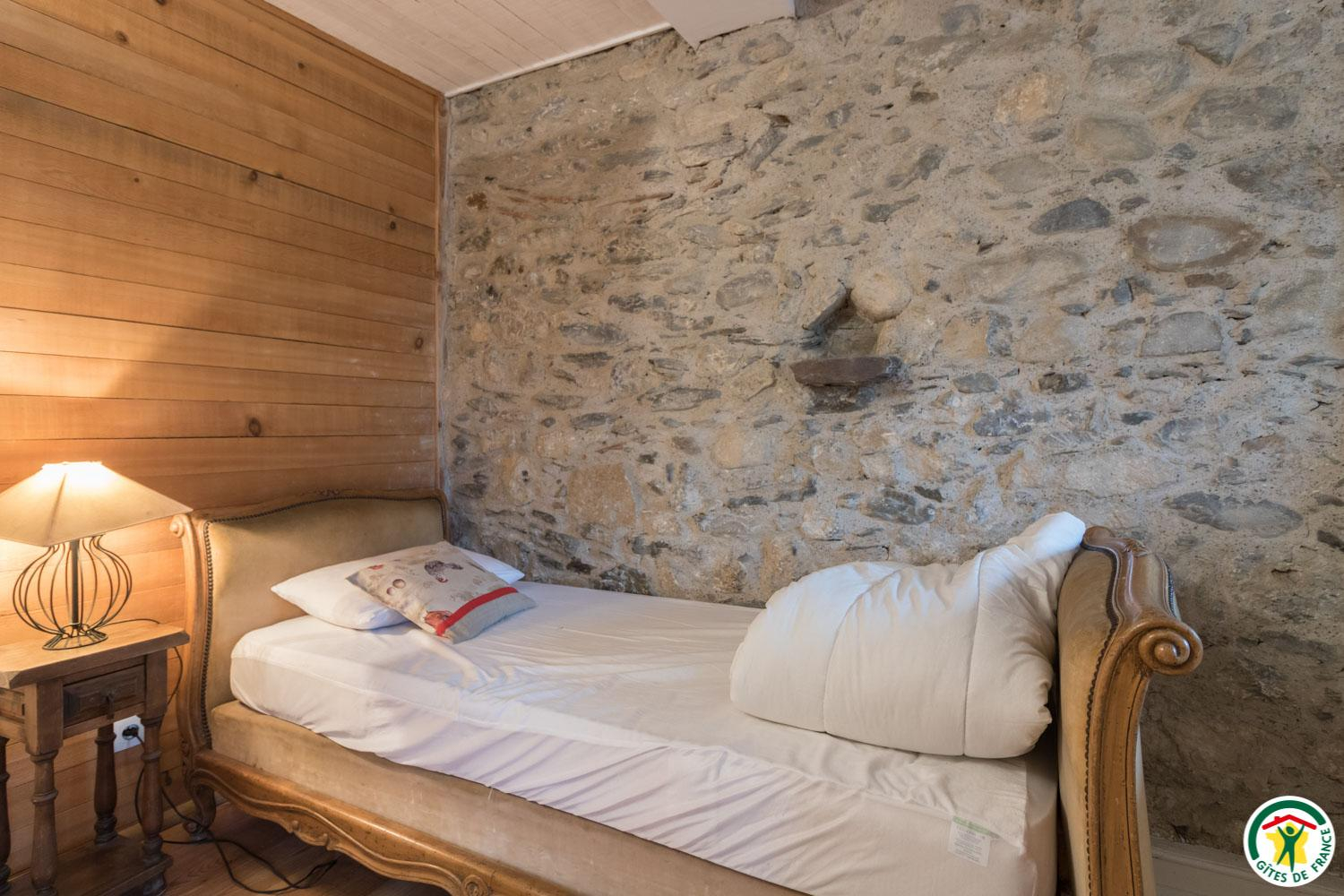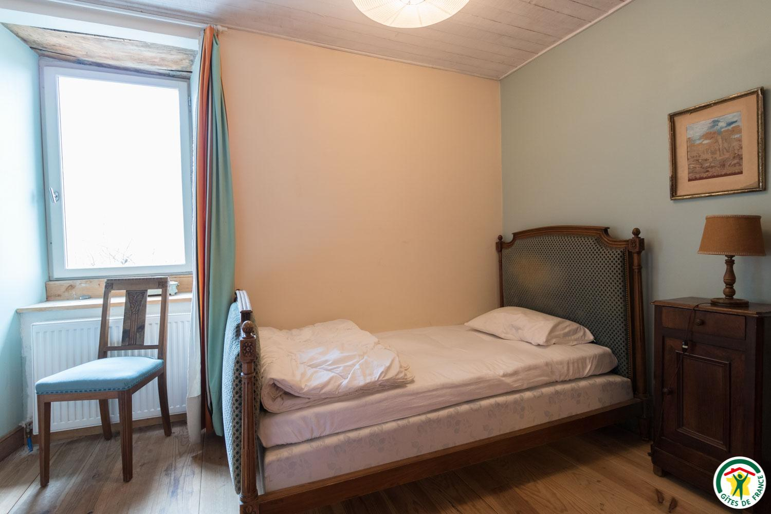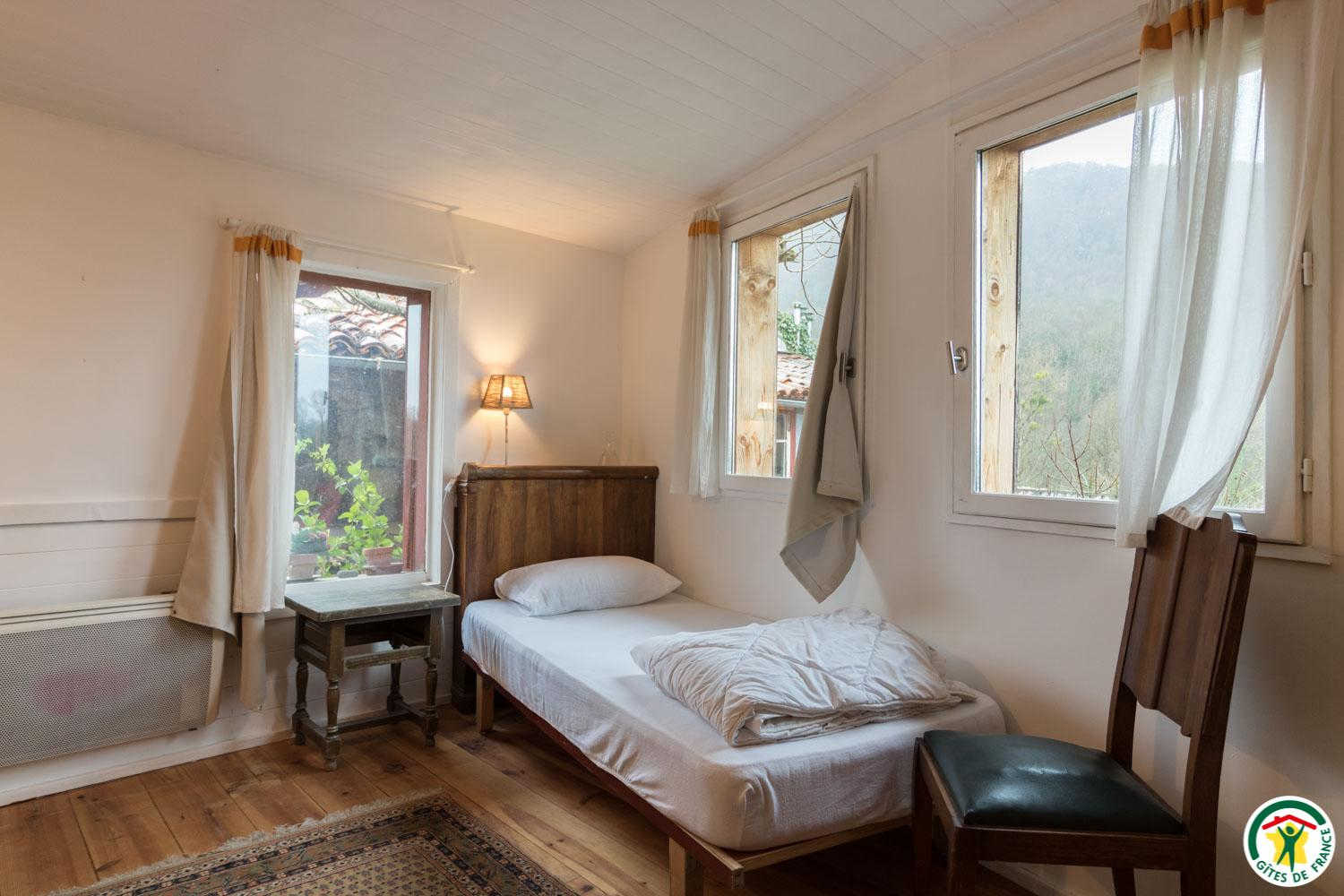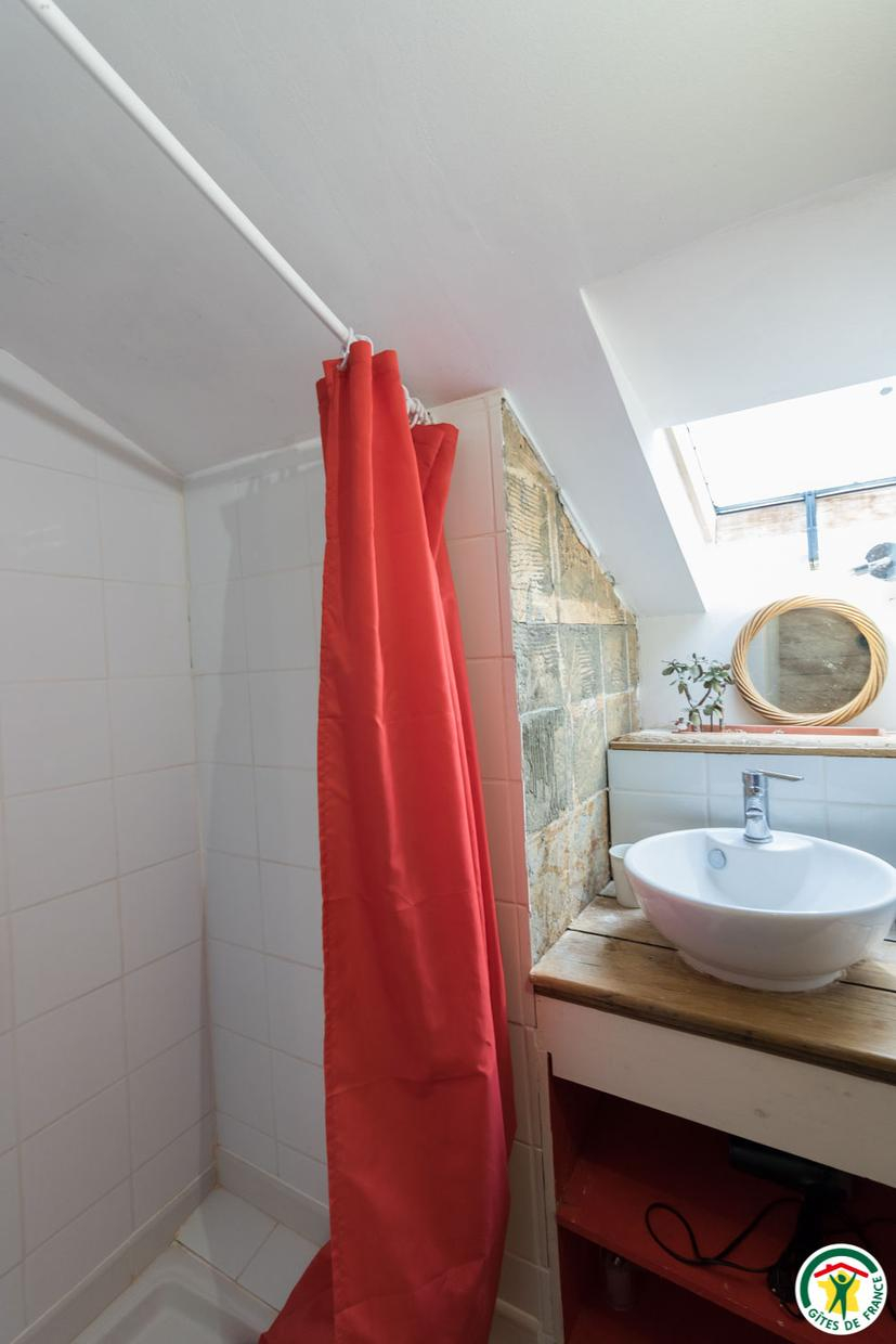 – Au deuxième étage sous combles : 1 chambre (1 lit double en 140*190cm) et 1 petit dortoir (1 lit double en 140*190cm et 3 lits simples en 90*190cm). Chaque unité de couchage (chambre ou dortoir) est équipée d’une salle d’eau/WC privative, à l’exception du deuxième étage où le WC est commun.